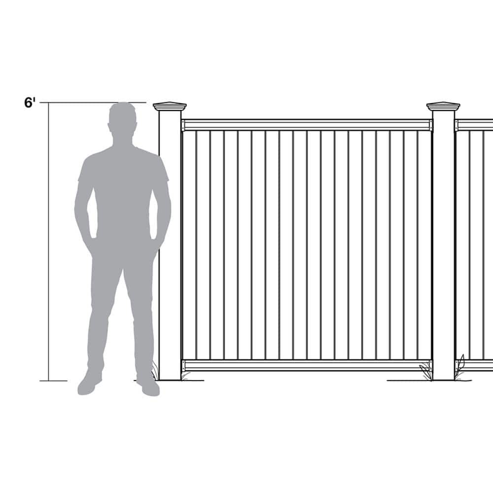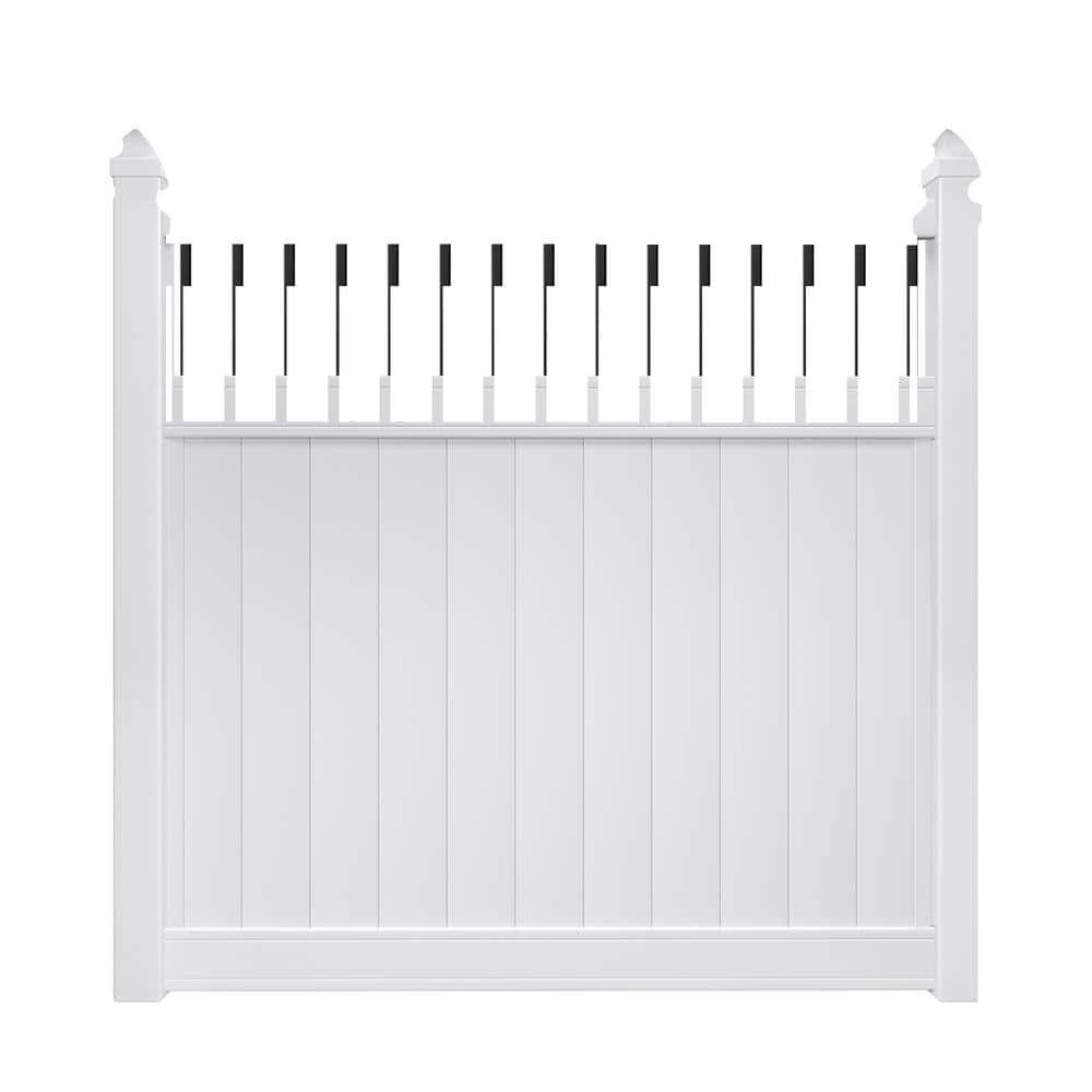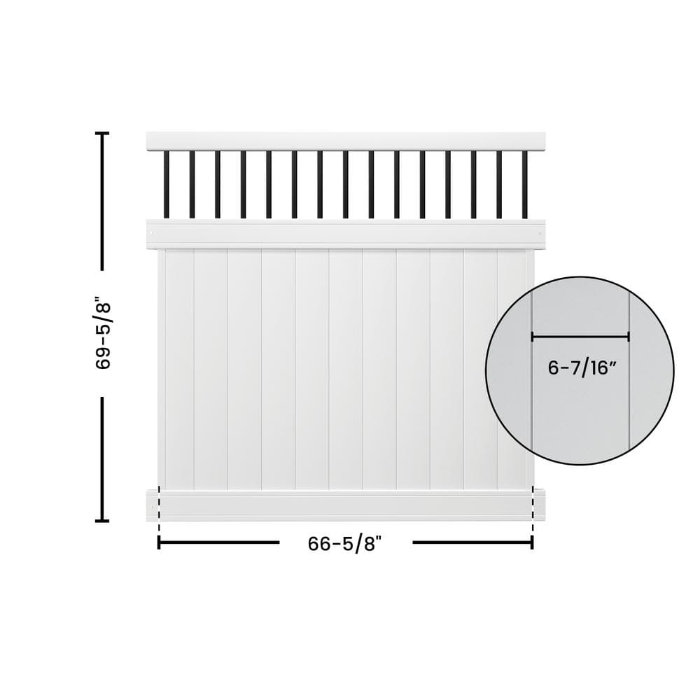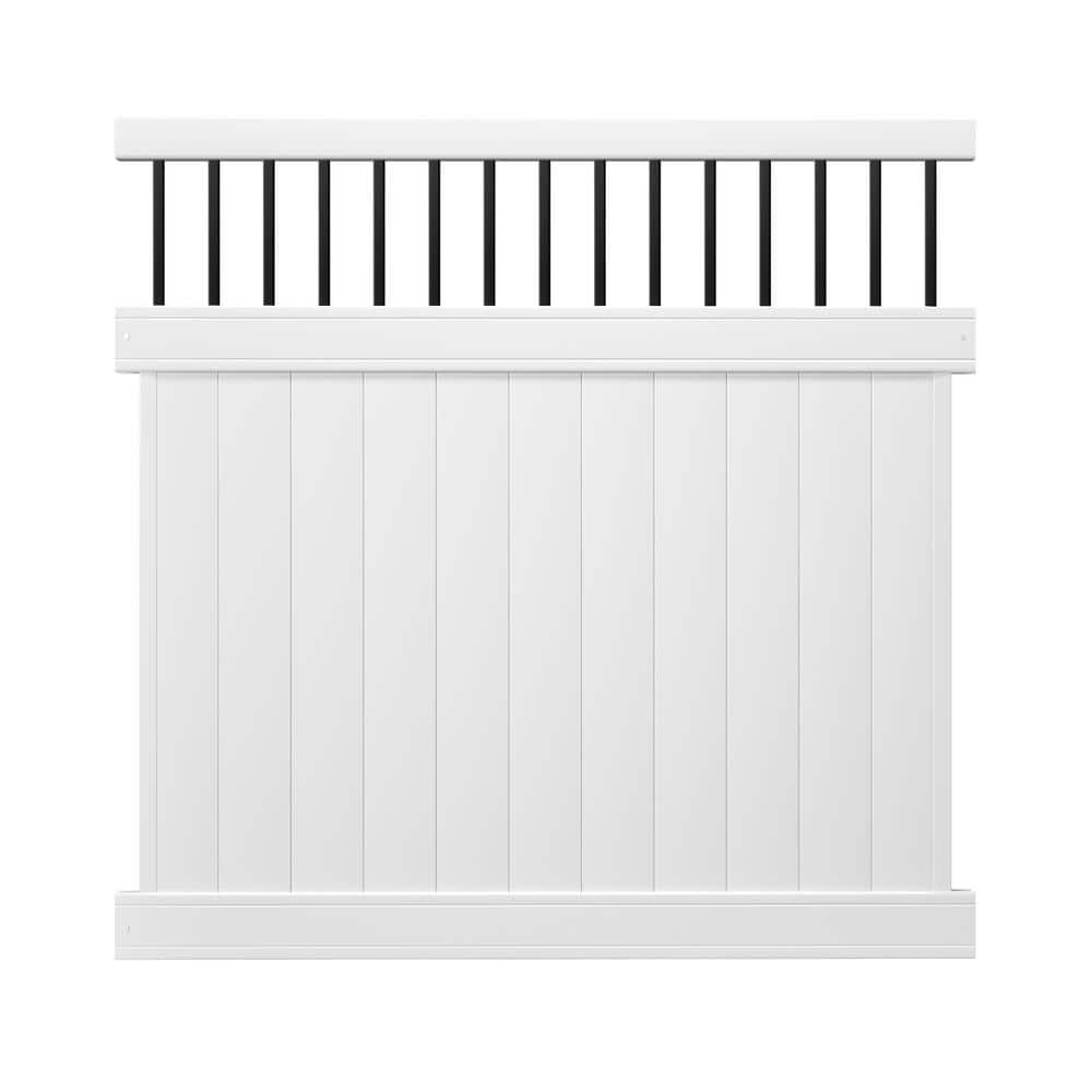 Enhance your outdoor space with the Veranda Pro Series Woodbridge Baluster Top Vinyl Fence Panel. Featuring a classic design with a modern twist, this fence panel combines white vinyl and powder-coated black aluminum balusters for a sophisticated, durable, and low-maintenance solution to your privacy needs.
