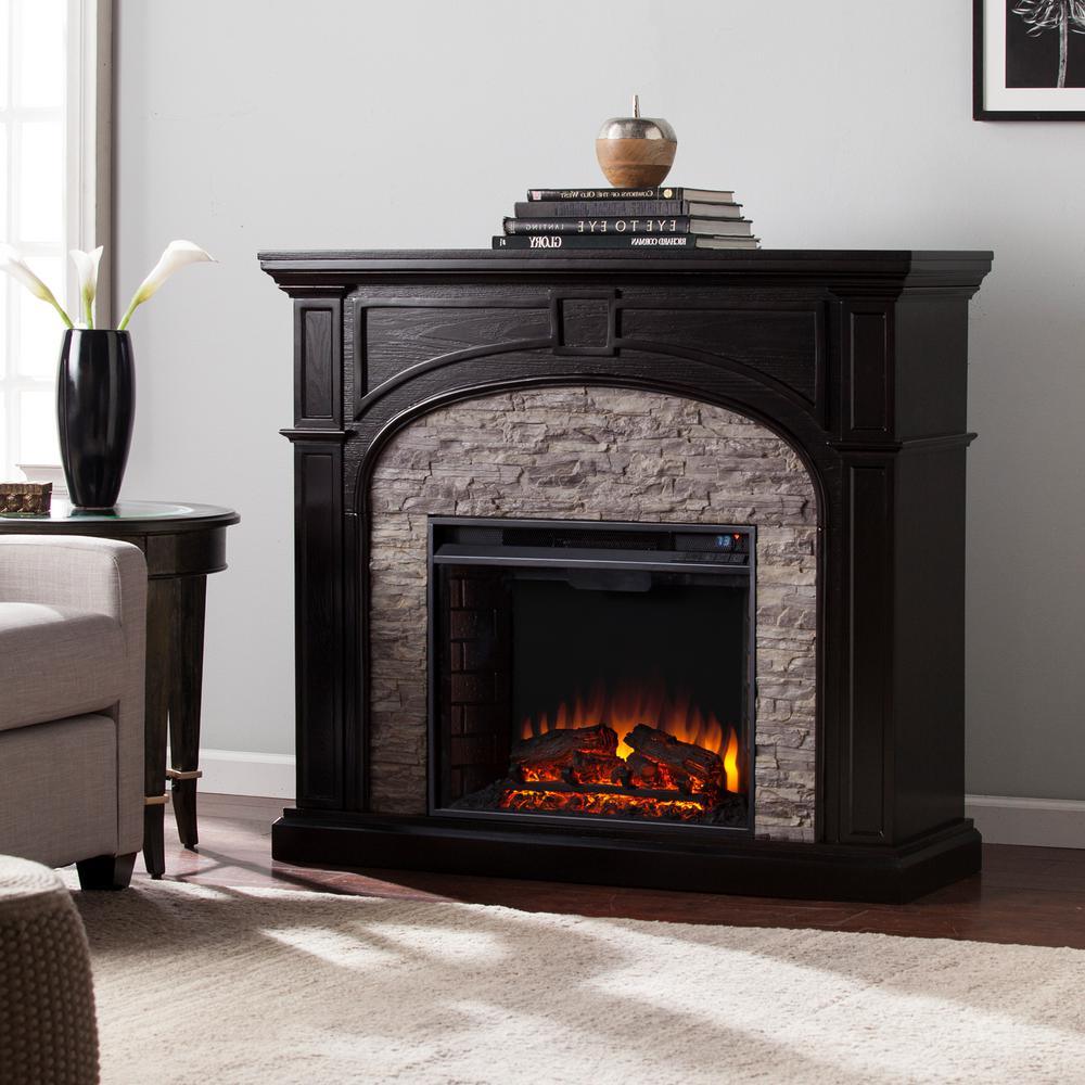 Granby 45.75 in. W Electric Fireplace in Ebony with Gray Stacked Stone