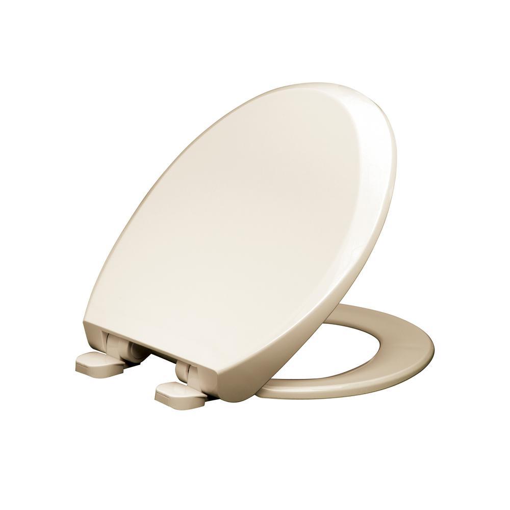 Made from durable and easy-to-care for plastic in bone, this Glacier Bay toilet seat is designed to fit all standard round front toilets. Its Quick Release Hinges mean installation and removal is a cinch, and the slow-closing hinges ensure the seat will close quietly every time. An excellent value, this toilet seat is backed by a limited one-year warranty.