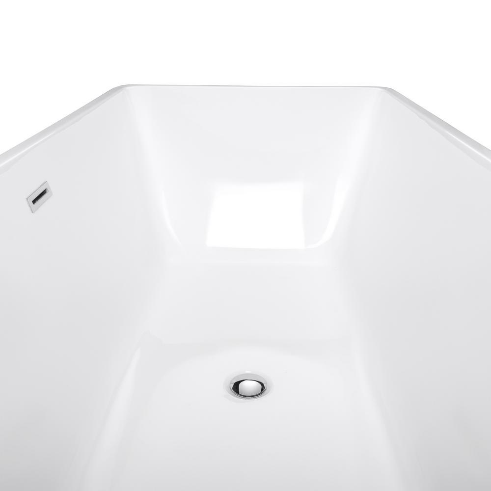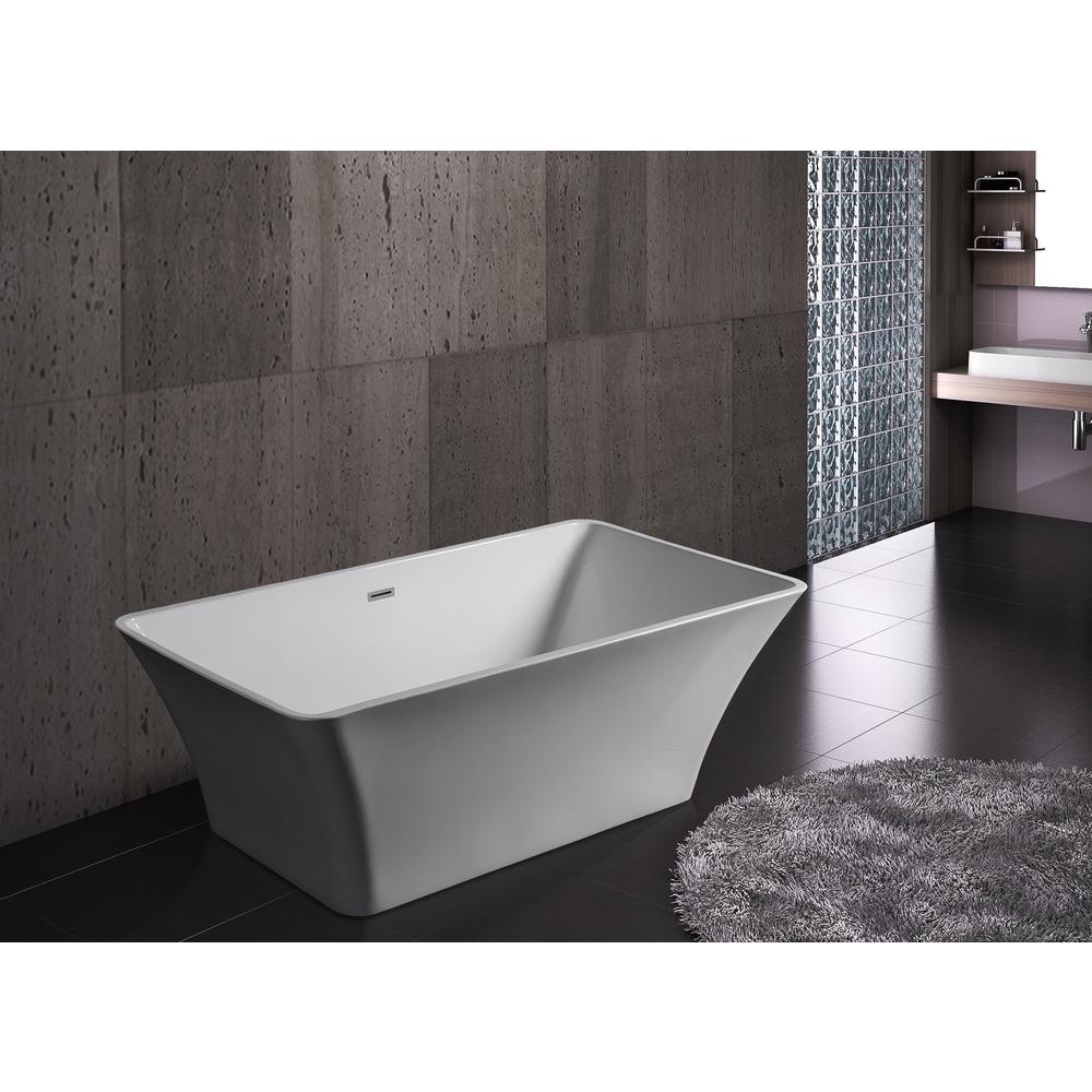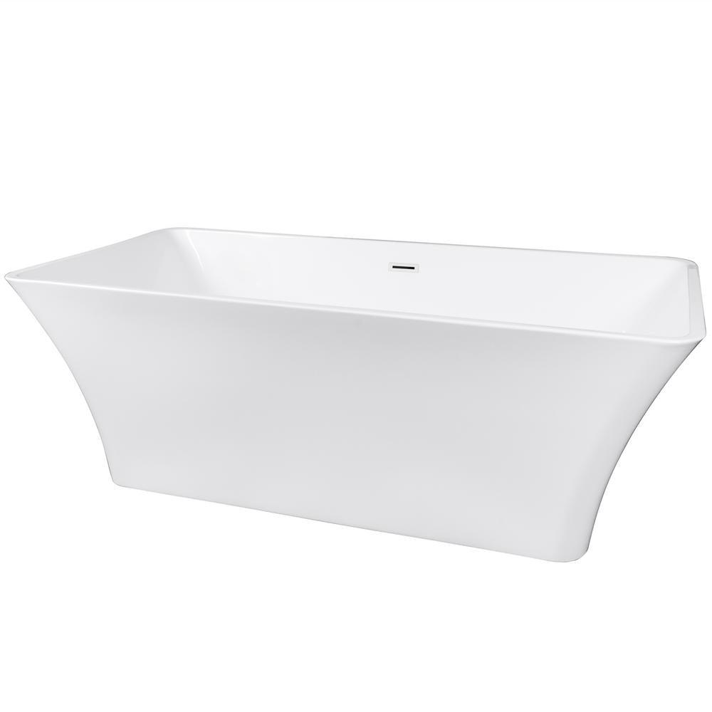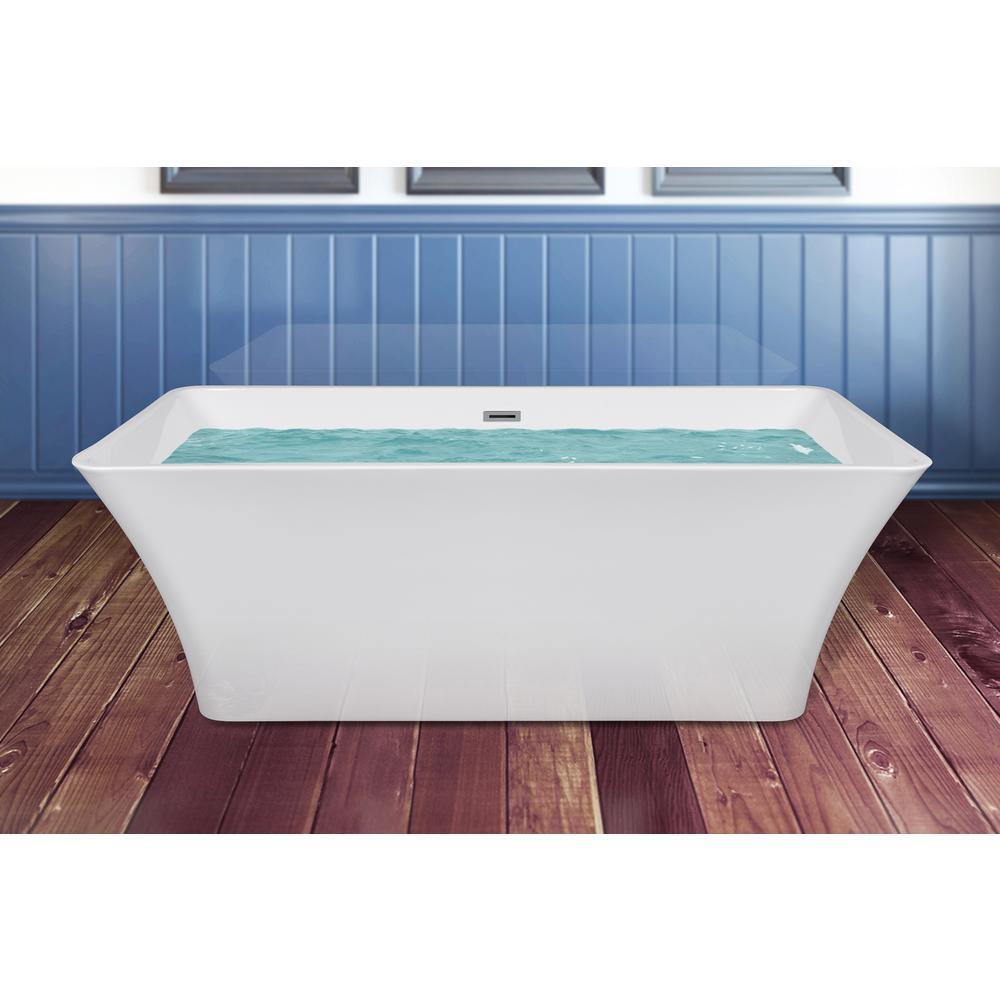 Mixing European styling with modern looks, the AKDY BT0066 freestanding bathtub has a refined look tailored for today's modern homes. A rectangular body with curved ends provides a long body perfect for long soaks without discomfort. An included chrome overflow prevents accidental spills and flooding. Adjustable legs hidden underneath allow the tub to be leveled on uneven flooring for a perfect fit and finish. A flexible tube drain allows for easy installation to your existing plumbing. Externally, it measures 66.93 in. L x 31.5 in. W x 23.23 in. H. Pair with our matching AKDY tub fillers for the most relaxing bath.