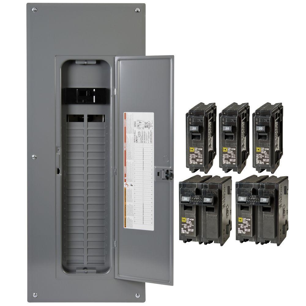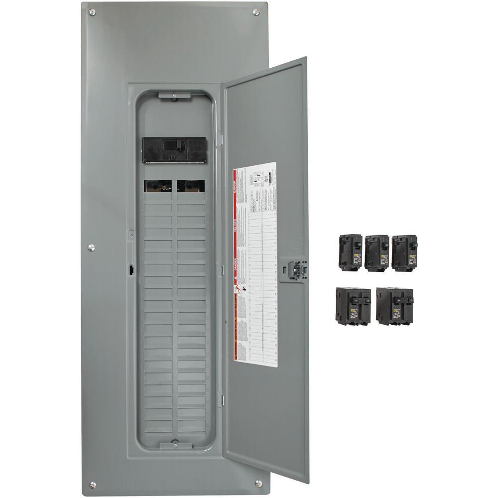 Includes (3) HOM120 Homeline 20 Amp single-pole circuit breakers, (2) HOM230 Homeline 30 Amp double-pole circuit breakers and a combination flush/surface cover