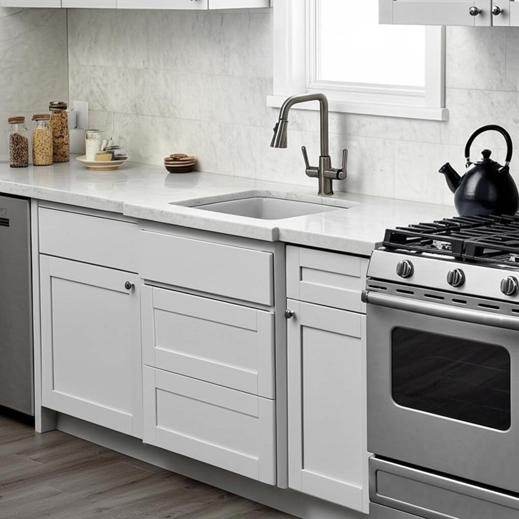 - Modern Design: Shaker style with a satin white finish complements contemporary kitchens.