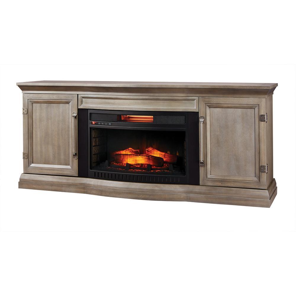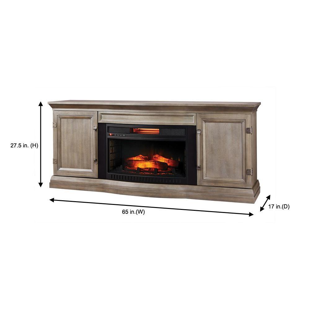 Cozy up to the warmth of a fireplace hearth in your living room, family room, dining room, or bedroom with the 65 in. CINDER LAKE Console Electric Fireplace. The 65 in. wide footprint makes this ideal for almost any room. You'll appreciate the quality construction consisting of hardwoods and laminates, finished in a rich gray. The CINDER LAKE Console offers realistic log and flames with energy efficient LED technology and four flame heights. Enjoy cozy fires year round with or without heat. With its 5,200 BTU infrared heater, the electric fireplace can warm even the largest rooms. Control the temperature range, 62° - 82° F and flame display with the handy remote control. The fireplace console can accommodate flat panel TVs and includes front panels for storing media and gaming accessories. With sound bar and Bluetooth, you can enjoy music to relax. Now any room can be a cozy haven with the CINDER LAKE Fireplace Console.
