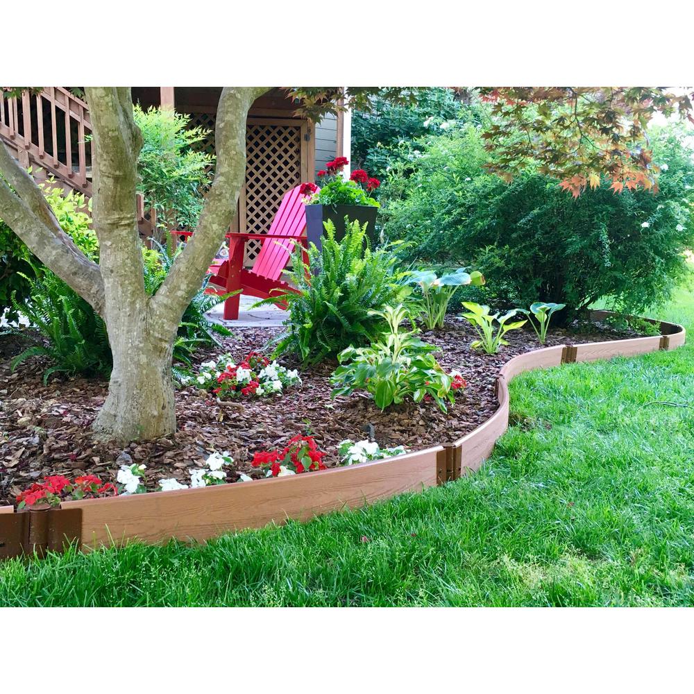 Play up your curves. These tool-free modular kits will inspire endless ideas on how to freshen up your landscape and improve your curb appeal. Create landscape edging, playground borders, or unique features that can be both soft and organic, or cute and fun depending on your design. Create simple scalloped borders, or undulating paths that are built to last. Your kit comes with everything you need to cover 16 lin. ft. You get four of our revolutionary 1 in. Classic Sienna composite curved boards, and four 1 in. snap-lock anchor brackets. Brackets simply slide and snap to lock securely to the board. The insulating open-channel boards trap air, providing insulation to your soil. Keeps soil warmer in the Spring and Fall, and cooler in the Summer, so you can grow for an extended period. Anchor brackets grip the ground tight, so your edging will stay put no matter the weather. The serrated stakes will also help to keep your borders from being disturbed by mowers or any human activity. Our Raised Garden Bed Anchor Brackets pivot 270°, allowing endless design options. Live near the shore? Use multiple kits to create a wavy border planted with blue and white lobelia to replicate the tide. Curved and straight border kits can be combined to create lozenge shapes, or pie-shaped wedges that can be arranged in many unique ways.