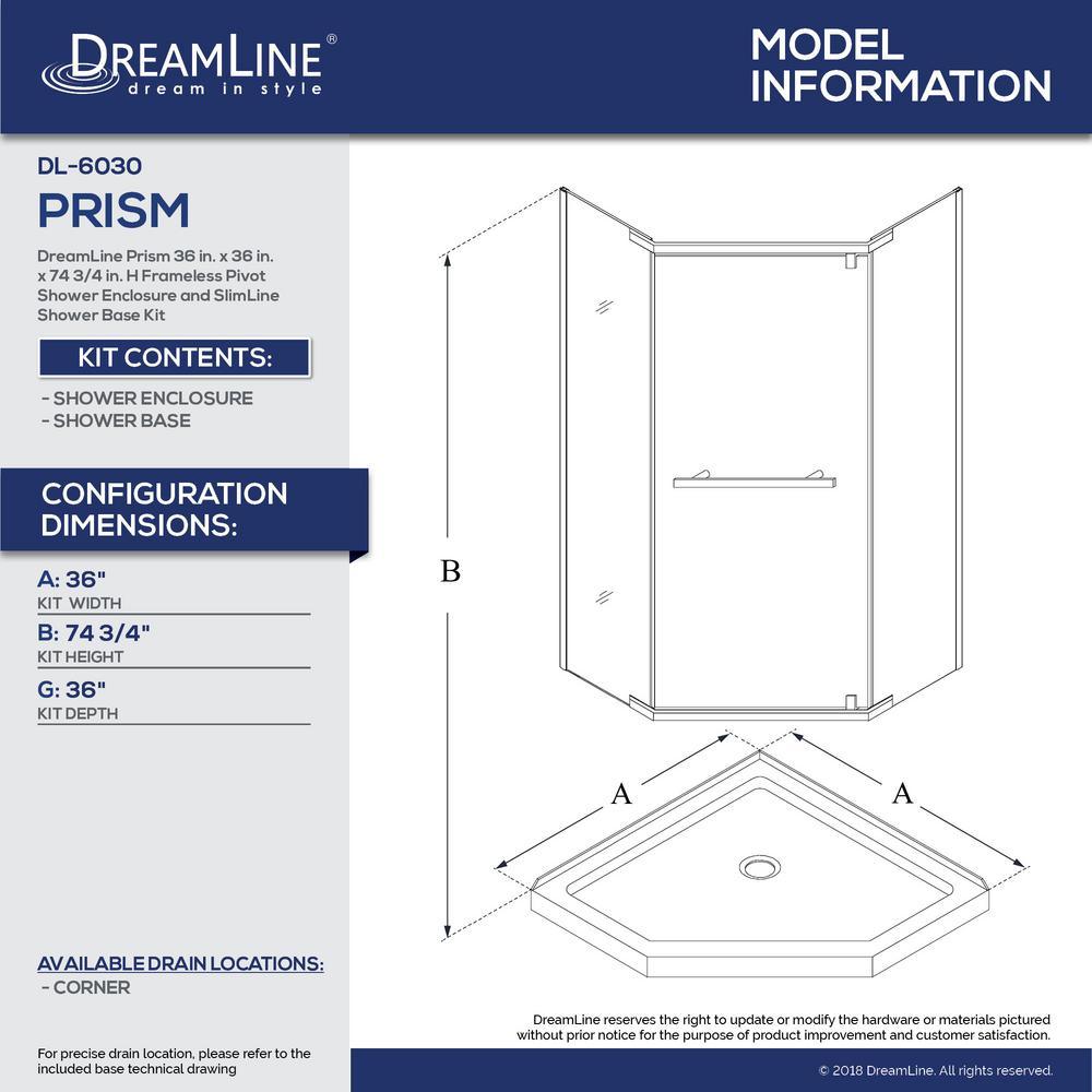 The DreamLine Prism neo-angle shower enclosure features a corner design and a modern shape that is the perfect complement to any bathroom. The Prism maximizes space and creates an open appearance with an outstanding style. Reversible for a right or left door opening. Complete your renovation with DreamLine for the ultimate solution for your shower project!