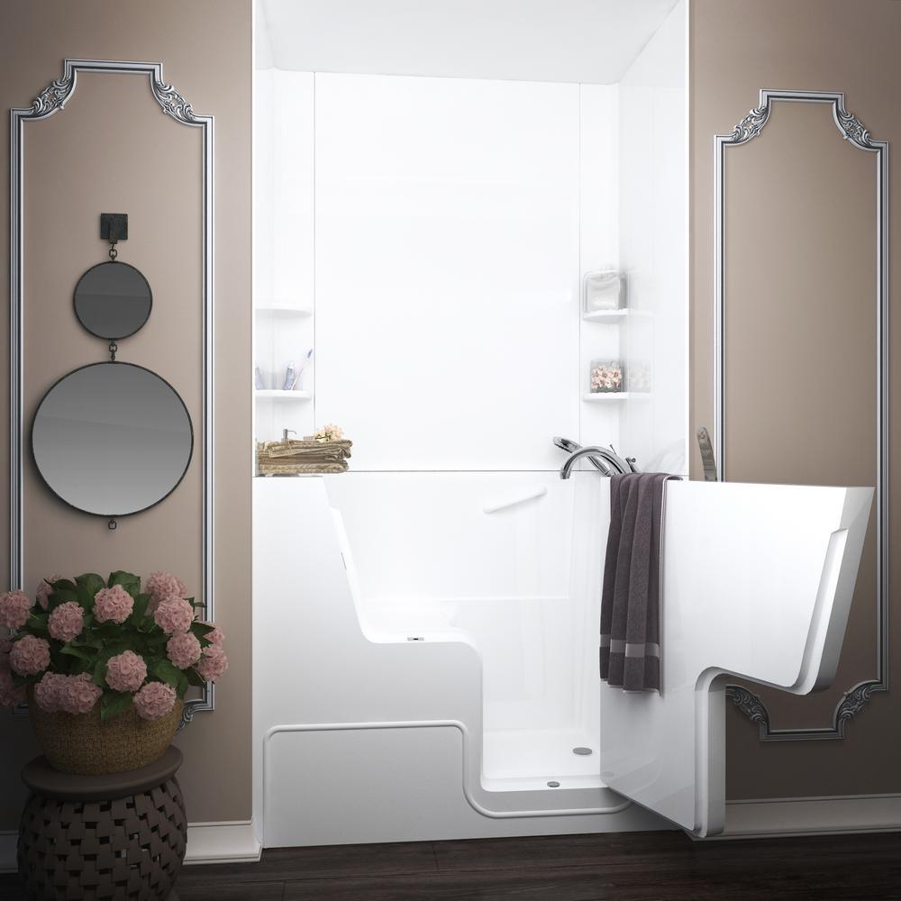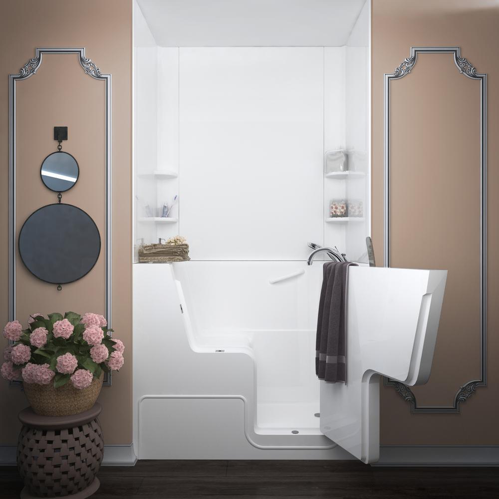Includes two (2) 60x60 in. flat surface rampart wall surround sheets, two (2) 60 in. tall corner caddies, ten (10) clear silicone tubes, double sided adhesive strips, two (2) caulking tubes, HD2953WCARWS walk-in bathtub