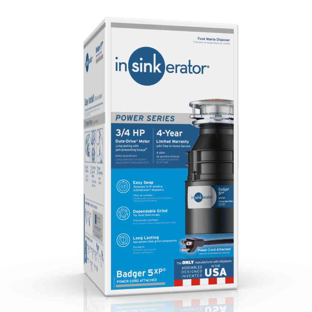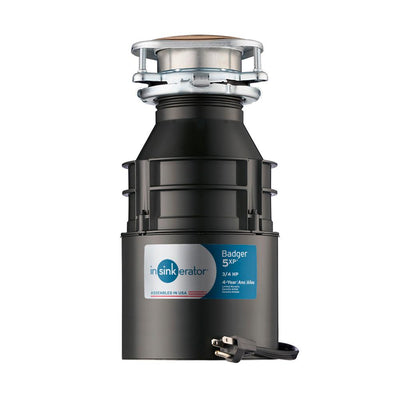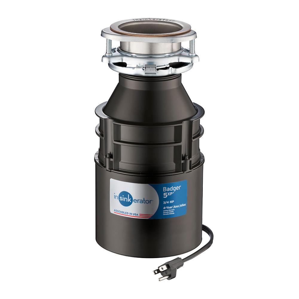Badger food waste disposers are a reliable and functional choice when affordability is the prime concern. Badger 5XP features a 3/4 horsepower heavy-duty quiet Dura-Drive induction motor, rugged galvanized steel construction for disposer durability, and a space-saving compact design. To top it off, Badger 5XP offers a 4-year We Come to You In-Home Service Warranty.