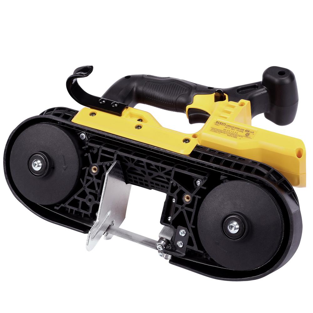 The DEWALT DCS371P1 cordless band saw is ideal for cutting conduit and schedule 40 pipe up to 2 in. in diameter, threaded rod, angle iron and metal tubing. At just 9.4 lbs., this band saw is easy to transport and use. Centered handle position provides superior balance and ergonomics and allows for more accurate cuts and less user fatigue. For a limited time get a bonus 20-Volt MAX Lithium-Ion Premium Battery Pack with purchase.