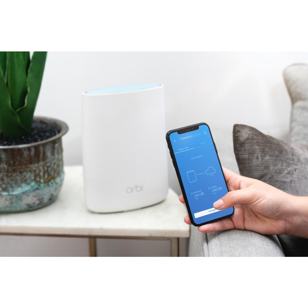 Orbi is the simplest and smartest way to enjoy high-speed WiFi in every corner of your home. This Orbi AC3000 Tri-Band WiFi System consists of a WiFi router and a satellite that offers outstanding coverage in homes up to 5,000 sq ft with strong and dependable WiFi signals. Its FastLane3 Technology brings to your home blazing fast WiFi speeds up to 3 Gbps—ideal for 4K HD gaming, streaming and more! With one seamless network, you can easily move from room to room without concern of your signal dropping. It also features guest WiFi network so you can easily set up a separate and secure WiFi network for visitors without having to share your home's WiFi password. Innovative Tri-band WiFi helps maximize the Internet speeds available in your home, even as more devices connect so you can enjoy better WiFi—everywhere.