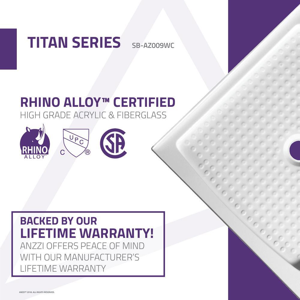 The perfect shower starts with a fantastic foundation. Our ANZZI Titan Series shower base is crafted entirely from Rhino Alloy-certified materials, like marine-grade acrylic, to guarantee it meets the highest standards for quality. Then we add a brilliant White finish that’s guaranteed to catch the eye and complement the style of any bathroom. The modern square design features a center drain for super-efficient drainage with minimal slope, while the standing surface is textured for secure, slip-resistant footing.