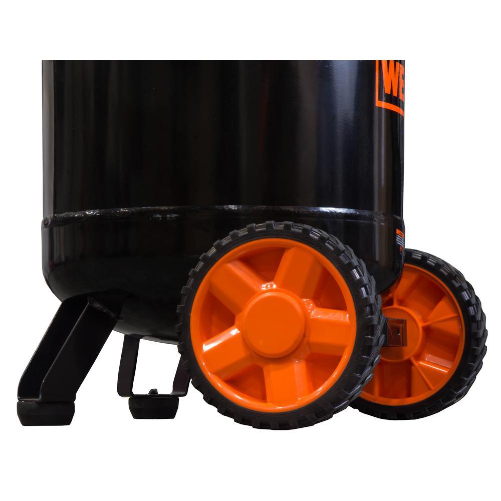 Remember when you had 20 Gal. of power for your pneumatic tools. The WEN 20 Gal. Oil Lubricated Vertical Air Compressor is the perfect companion for the garage, the job site or the work shop. Plug in nailers, staplers, spray guns or any other pneumatic tool for a versatile and dependable set-up that answers a variety of woodworking and painting needs. The tank along with the 2 rubber-footed legs and 2 wheels maximize stability, preventing the compressor from tipping over during operation. The 15A motor and the reinforced steel tank work together to provide a max pressure of up to 135 PSI. The auto-shut-down function turns the compressor off once it reaches its max PSI for safe and reliable compressing. This single-stage compressor boasts air flow rates of 3.8 CFM at 90 PSI and 5.0 CFM at 40 PSI. The WEN 20 Gal. Oil-Lubricated Vertical Air Compressor also includes 2 pressure gauges; 1 to monitor the internal pressure of the tank while the other regulates the rate of air flow. The onboard handle makes transportation and storage easier than ever while the 1/4 in. NPT quick-coupler air outlet allows for quick and simple hose changes and, because it’s a WEN Product, your purchase comes backed by a 2-year warranty, a nationwide network of skilled service technicians and a friendly customer help line all to make sure the you remember WEN.