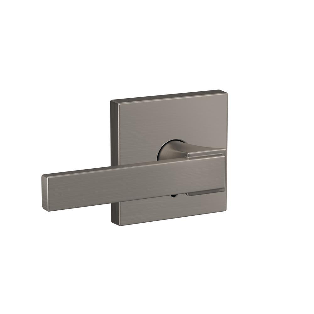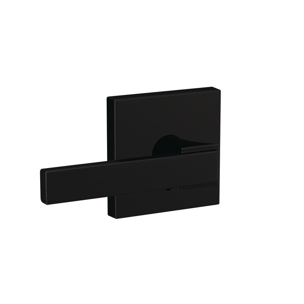 The Schlage Custom Northbrook Lever with Collins Trim Passage and Privacy Lock in Matte Black is uniquely designed to work on both Hall/Closet and Bed/Bath doors. It’s easy to switch between locking and non-locking functions. Just insert or remove the locking pin from the pinhole on the interior side of the hardware. Schlage Custom hardware is also designed with premium style in mind, featuring low profile trim and concealed screws for a more polished look. The Northbrook lever is imaginative and refined with a strong contemporary influence, while the Collins trim’s strong lines and square shape embody refined elegance. The striking appearance of the Matte Black finish creates an elegant look that’s sure to be noticed in any style setting.
