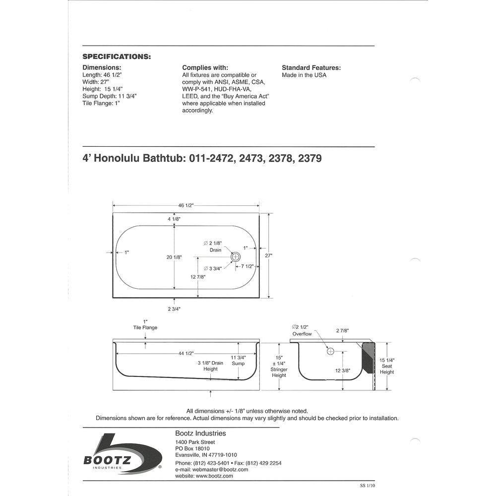 Honolulu 4 ft. bath is constructed of heavy gauge 1-piece seamless steel with acid resistant porcelain enamel finish