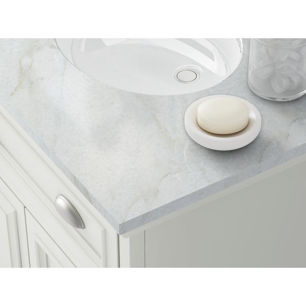 Authentic marble vanity top may exhibit swirling, spotting, or brown veining; these features are part of the natural beauty of stone and have no effect on function or durability