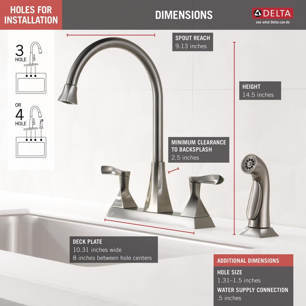 With defined edges and an elegant twist, the Everly Collection has a distinct silhouette to embellish your kitchen. This high-arc kitchen faucet provides exceptional spout reach, making easy work of filling pots and washing dishes. You can install with confidence, knowing that Delta faucets are backed by our Lifetime Limited Warranty.