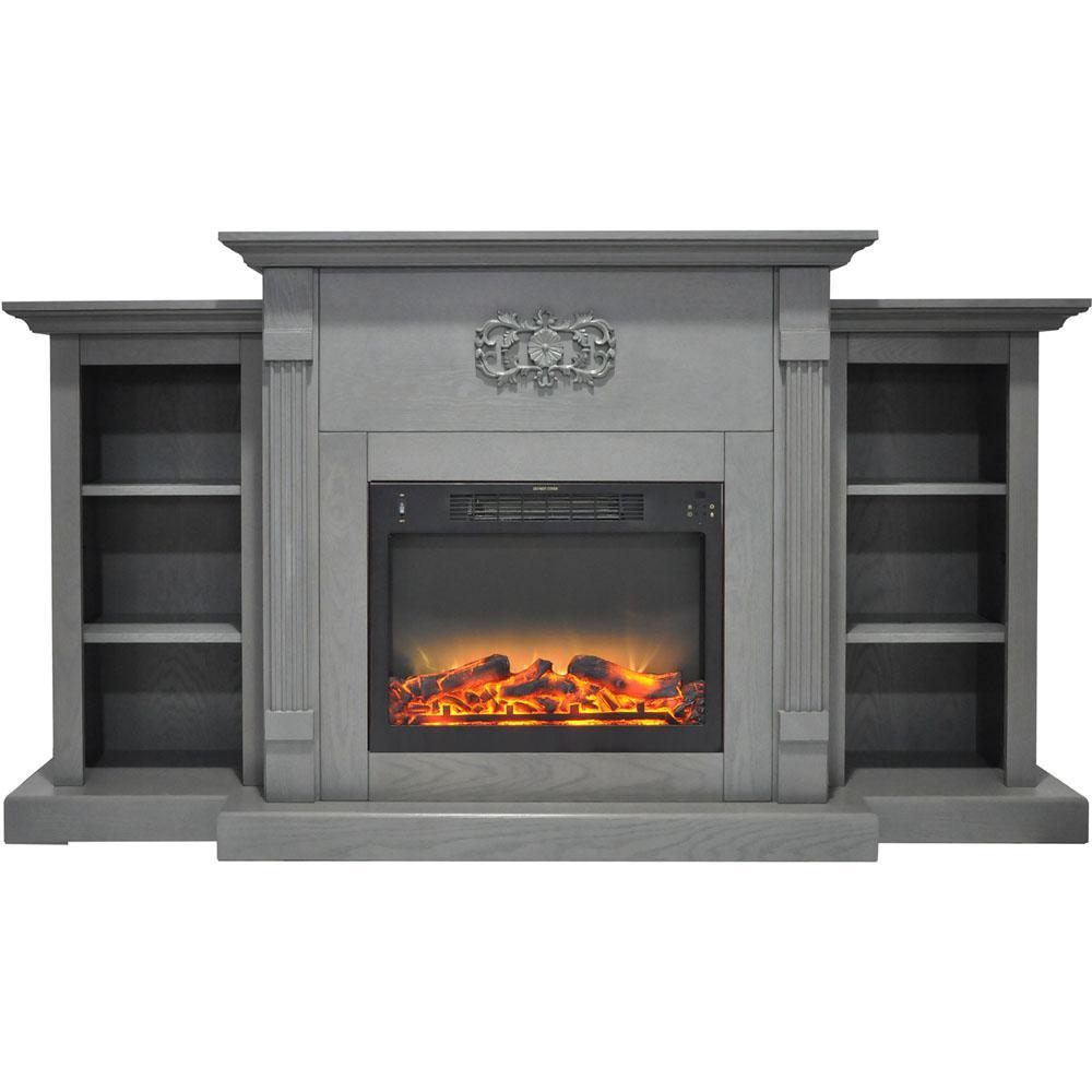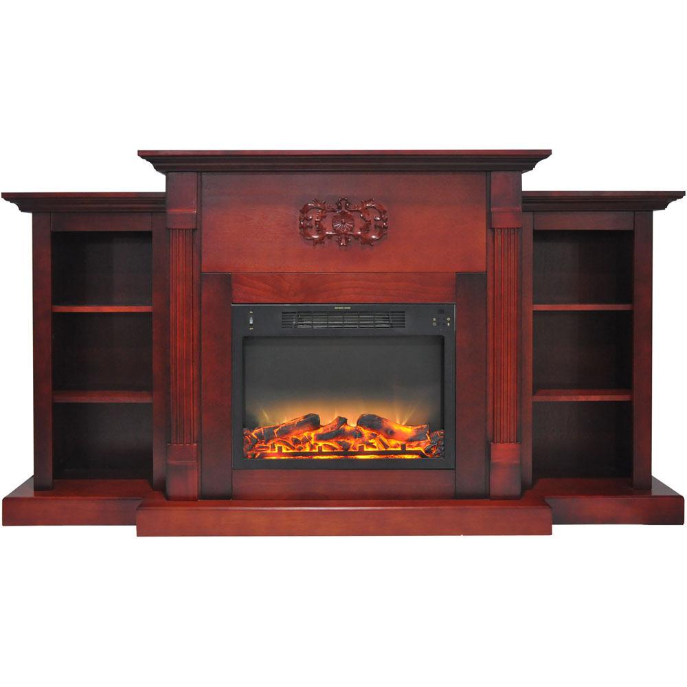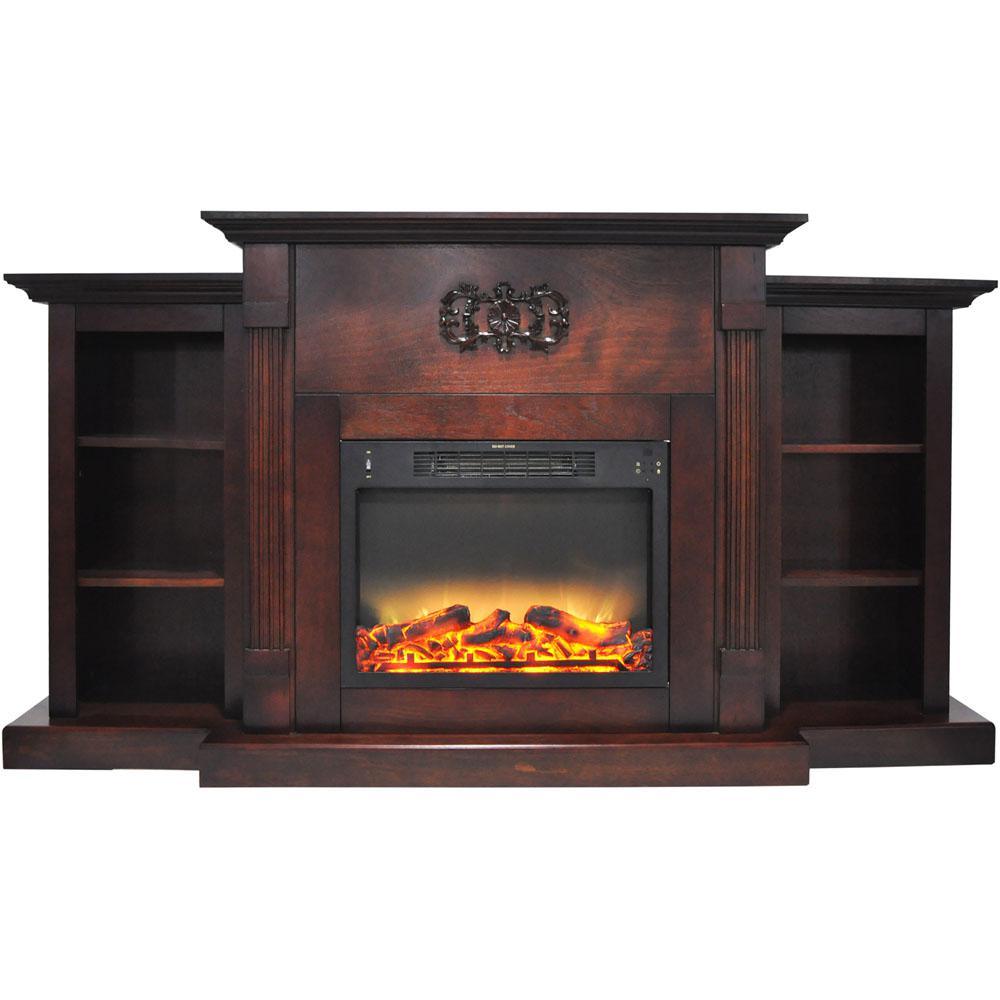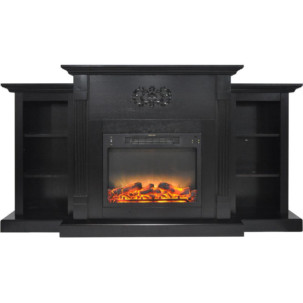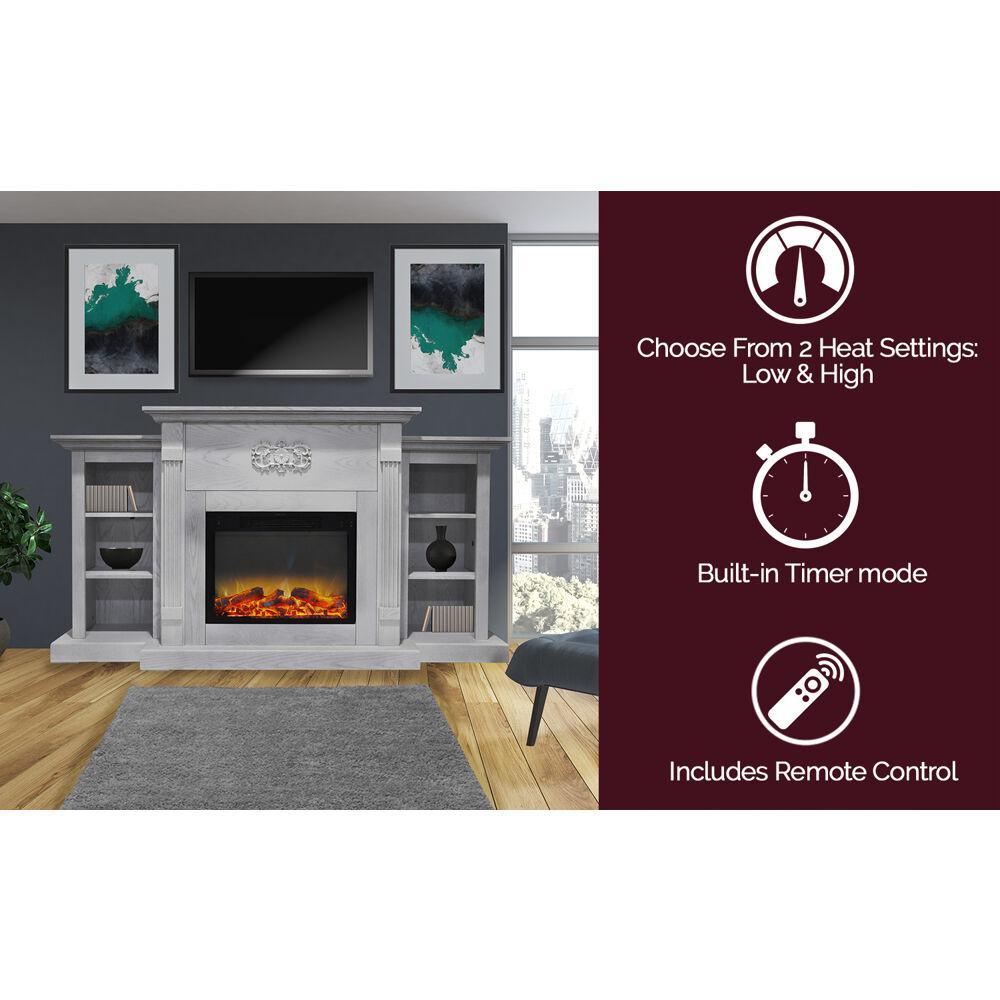 Electric fireplaces are an easy way to add warmth and character to your home. If you are looking for an multi-functional statement piece, the Sanoma Fireplace is perfect for you. Two side bookshelves balance the middle frame that hosts the fireplace insert. These shelves, along with the long mantel top, provide plenty of space for displaying books and decor. A Gothic floral appliqu is carved across the top of the fireplace, giving it a classic and traditional look. The clean lines, fluted pilasters, and crown molding are a few of the design details that add even more character to the frame. The electric insert produces 5,115 BTUs of fan-forced heat that can quickly heat a 210 sq. ft. room. An enchanting flame display dances across the back of the firebox, creating movement that is sure to catch your eye. Embers of light glaze across the logs within, adding highlights throughout the enhanced log display. The heat settings can be adjusted at the push of a button, and you have the option.
