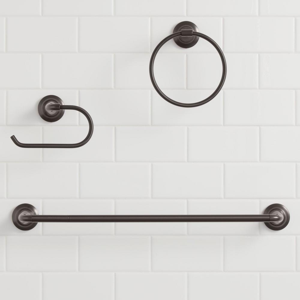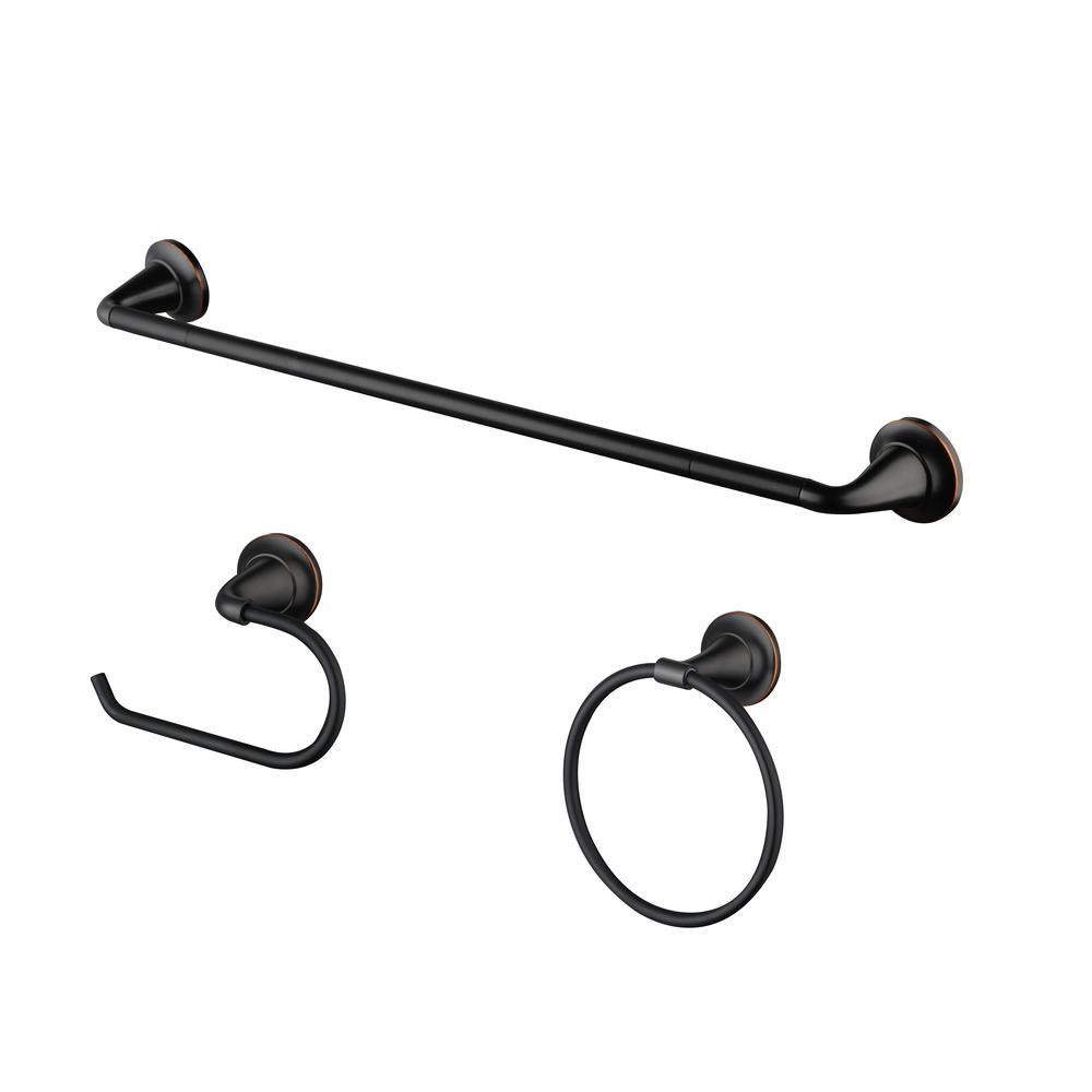 Glacier Bay Constructor 3-Piece Bath Accessory Kit features an expandable towel bar, toilet paper holder and towel ring for a complete bath set. The bronze finish offers a classic look. The set installs easily anc comes with complete mounting hardware. The towel bar can be installed at 18, 21 or 24 in. to suit available bathroom space. A limited lifetime warranty is included.