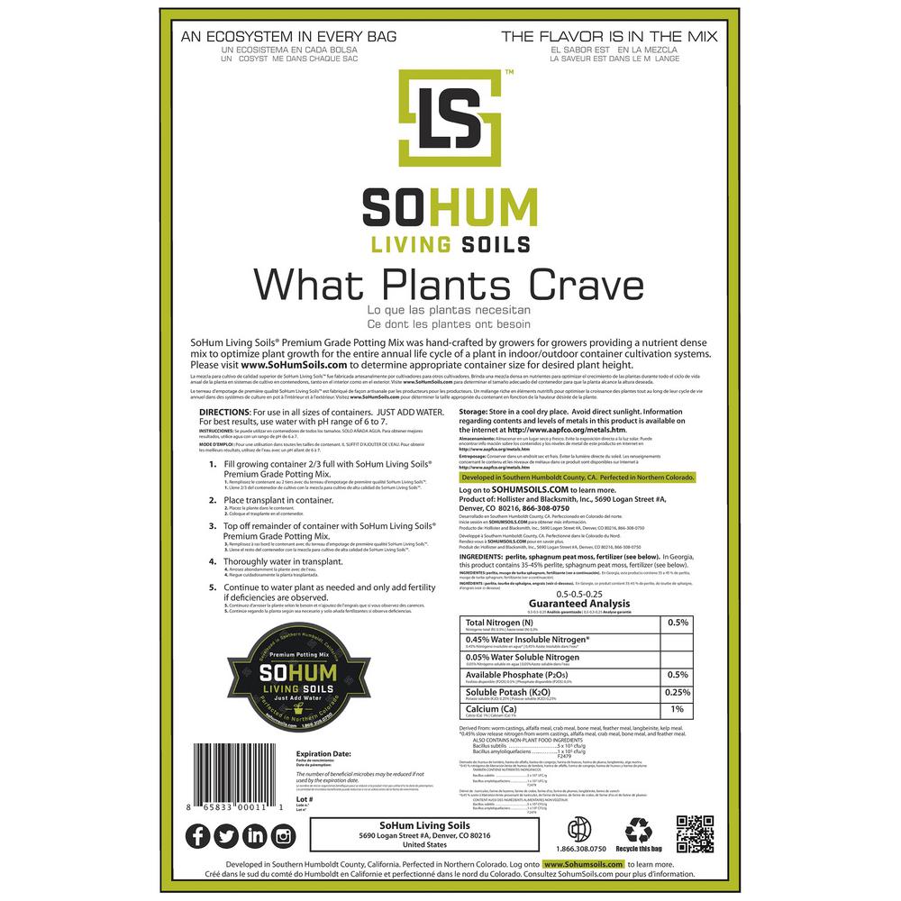 SOHUM Living Soil. Just Add Water. Organic Potting Mix, Plant Food. Increases Yields and Quality. Vegetable and Flower Potting Mix. Non-GMO. Safe around People, Pets, Wildlife. Eco-Friendly. No Mixing or Measuring.