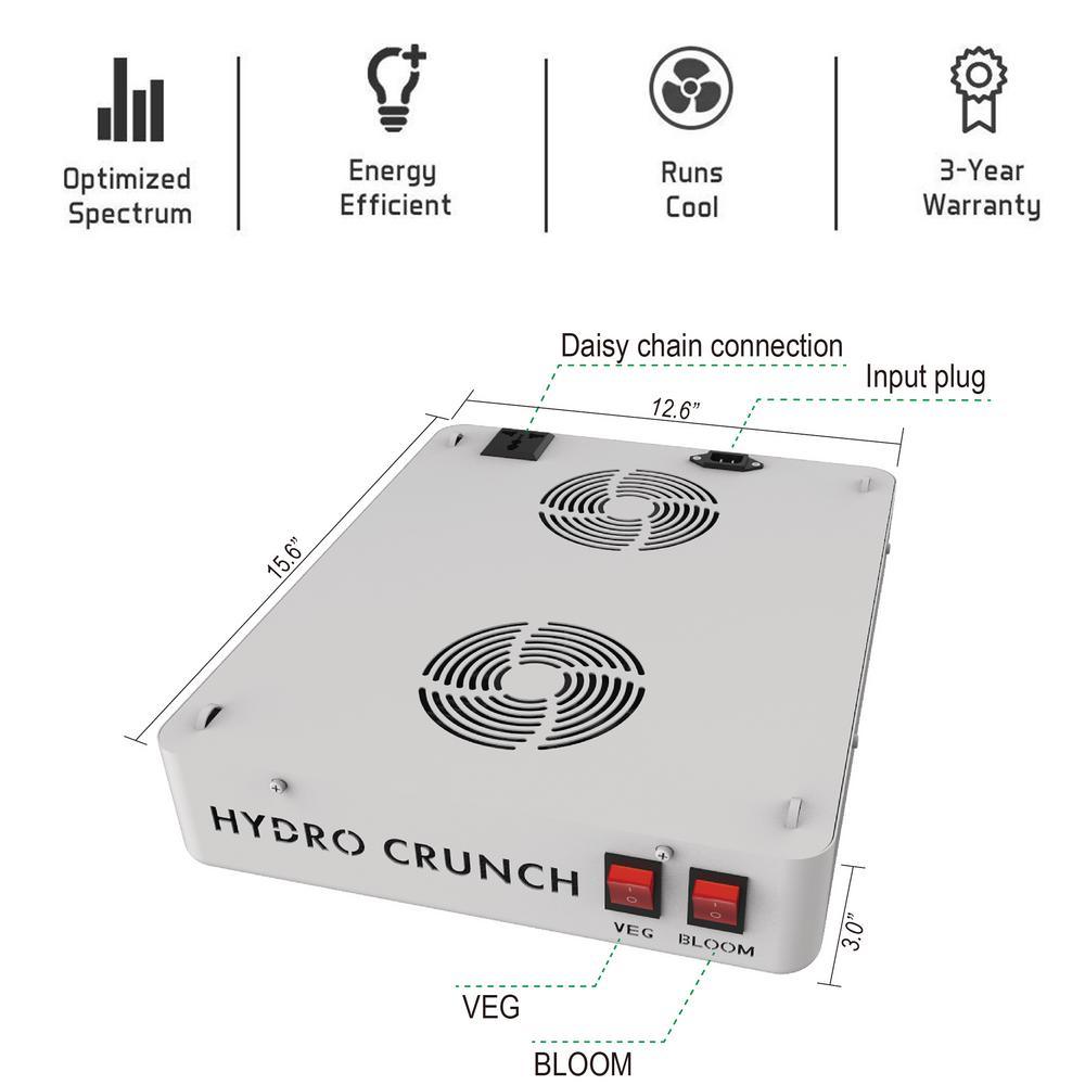 - Hydro Crunch 600-Watt Equivalent LED Light Fixtures feature Daisy Chain capability. Maximum Daisy Chainable Lights: 4 units. Do not exceed 1000-Watt (True Wattage)