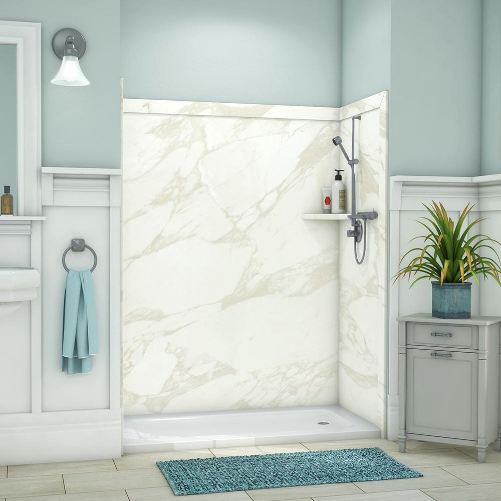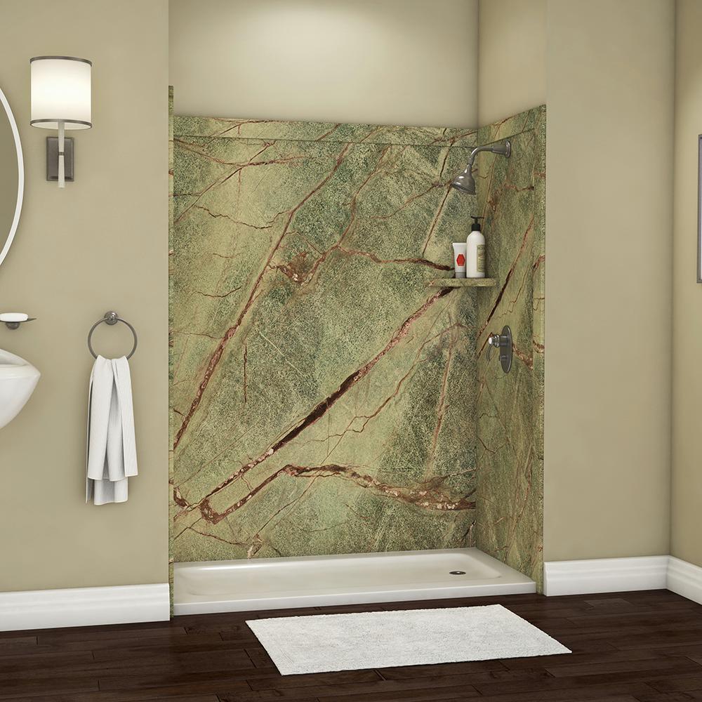Surround yourself with the luxurious look of natural stone with FlexStone, the revolutionary tub and shower wall material that is easy to cut and install and easier still to clean and enjoy. The Royale Shower Surround Kit will fit openings up to 60 in. W x 36 in. D x 80 in. H and includes one 60 in. x 80 in. back wall panel, two 36 in. x 80 in. side panels, two 8 in. x 20 in. tub leg panels, one 3 in. x 60 in. back wall trim, two 3 in. x 96 in. mitered side wall trim, two 3 in. x 38 in. mitered top trim, one corner shelf and inside corner reinforcements. The kit also includes specially-formulated adhesive to adhere FlexStone panels directly to sheetrock, cement board or other backer board material and color-matched silicone to finish all joints in the final step of installation.