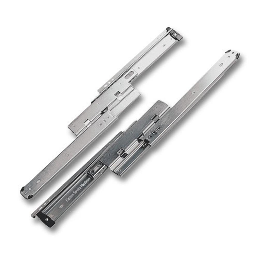 This drawer slide has a bright zinc finish and a progressive action design that operates smoothly and quietly. The drawer is Full extension and can support up to 150 pounds. It also has a quick disconnect release clip for easy removal. Please note that Screws are sold separately.