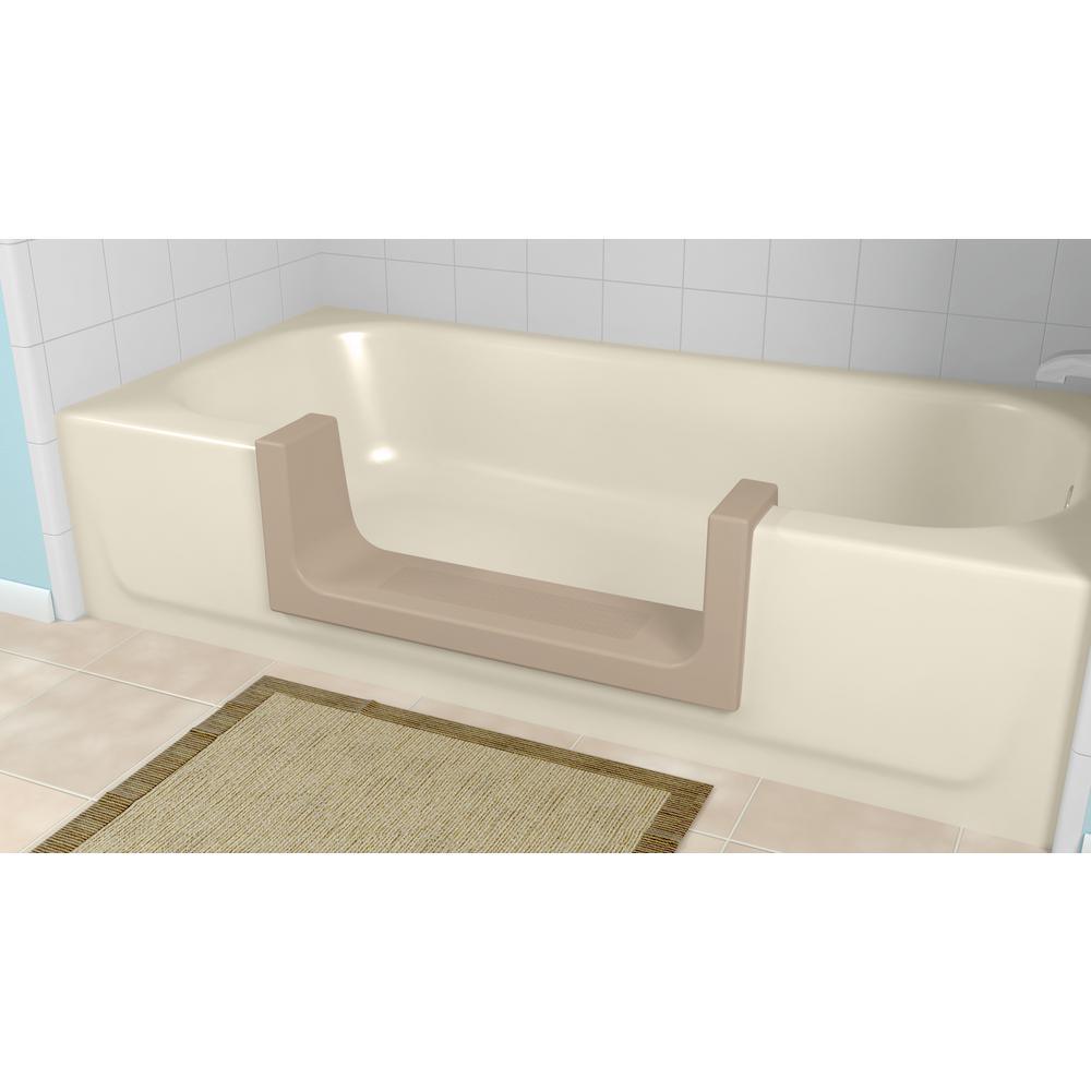Convert an existing bathtub into a step in shower with the Clean-cut Step. Kit Comes Complete with 1-Step, one 2-part Support Structure, 2-bottles of Industrial Grade Adhesive with Application Nozzle, 1-Cutting Template and Installation Guide. Step features non-skid step pad for step-in shower accessibility.
