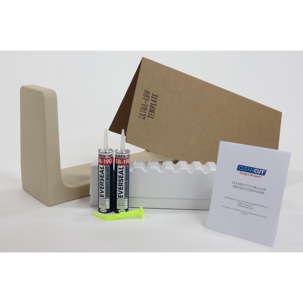 Convert an existing bathtub into a step in shower with the Clean-cut Step. Kit Comes Complete with 1-Step, one 2-part Support Structure, 2-bottles of Industrial Grade Adhesive with Application Nozzle, 1-Cutting Template and Installation Guide. Step features non-skid step pad for step-in shower accessibility.