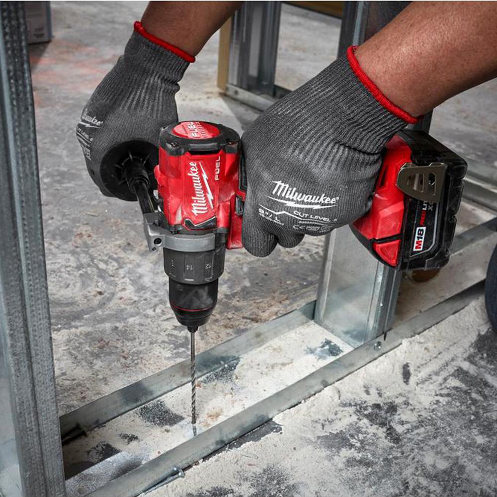 The Milwaukee M18 FUEL 1/2 in. Hammer Drill is the industry's most powerful brushless battery powered drill, delivering up to 60% more power. Its cordless body is up to 1.5 in. shorter and up to 2-times faster under heavy-load than other models. The all-metal ratcheting chuck is the best in class by providing increased bit grip strength and corrosion resistance. The POWERSTATE Brushless Motor was purposely built for the M18 FUEL 1/2 in. Drill Driver to provide Up To 60% more power than the competitive set. Built-in REDLINK PLUS Intelligence ensures optimal tool performance and provides overload protection to prevent damage to the tool and battery during heavy applications while still maintaining compatibility across the entire M18 system. The REDLITHIUM High Output HD12.0 Battery Pack delivers more work per charger and more work over the life of the pack than competitors. In addition to the drill, this kit comes with 2 M18 REDLITHIUM XC 5.0 battery packs (48-11-1850), 1 M18/M12 multi-voltage rapid charger (48-59-1812), a side handle, belt clip, belt holder, and a durable carrying case.