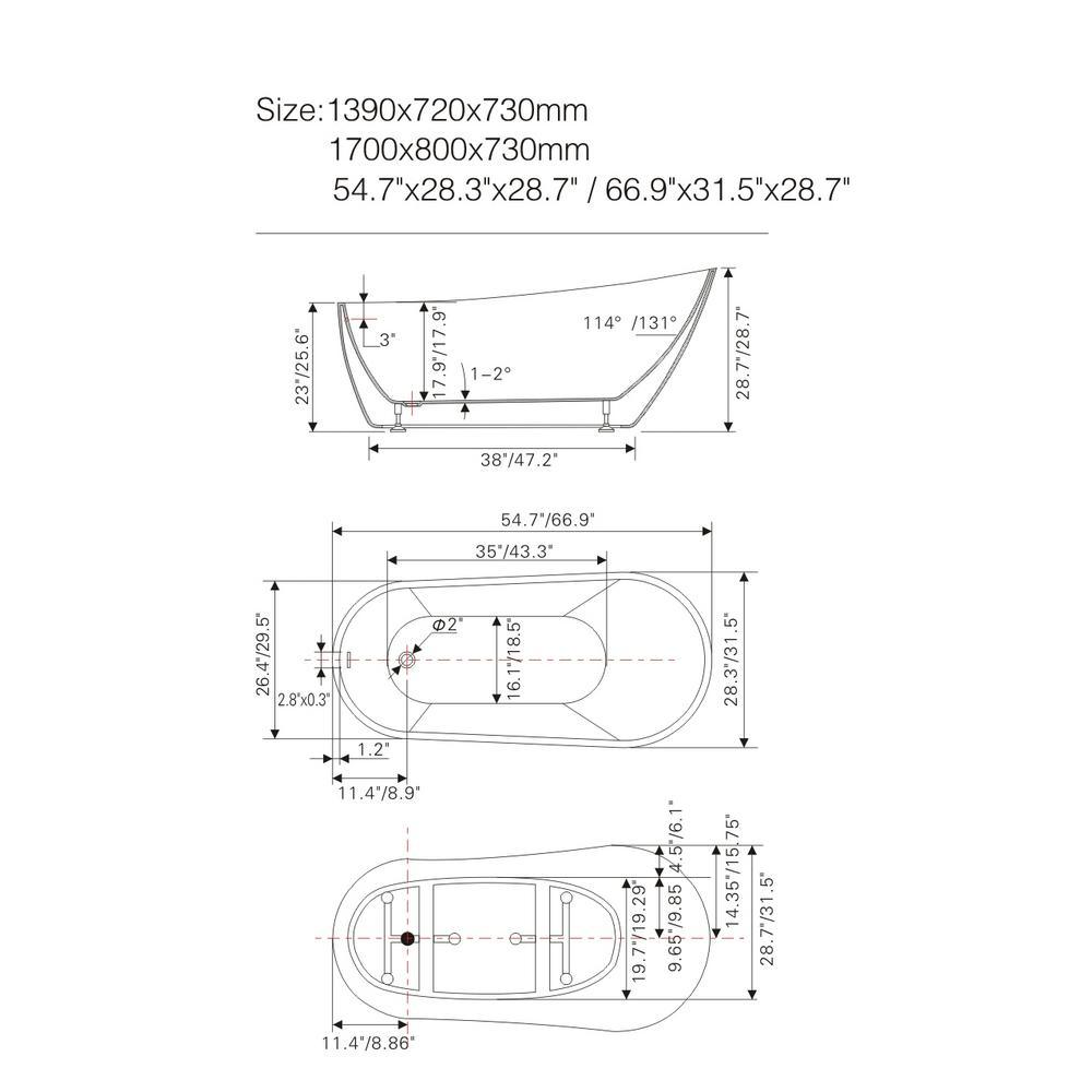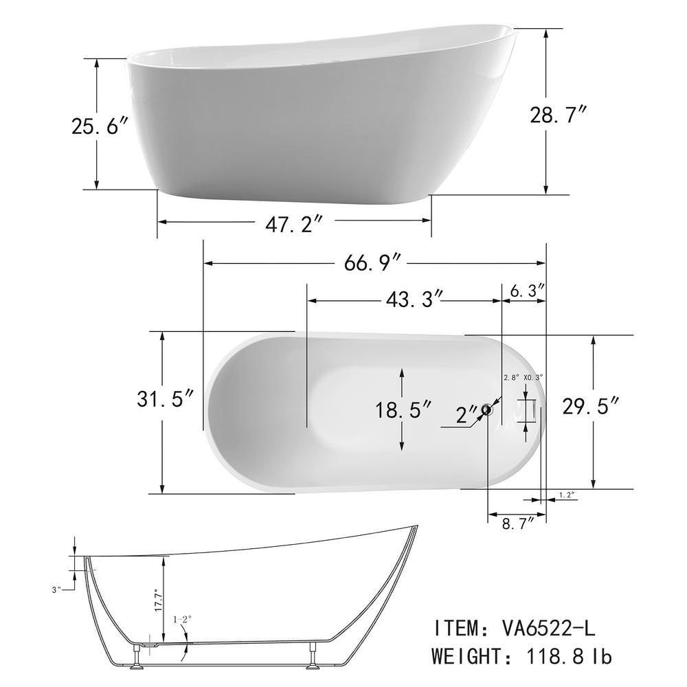 Colombes 67 in. Acrylic Flatbottom Freestanding Bathtub in White