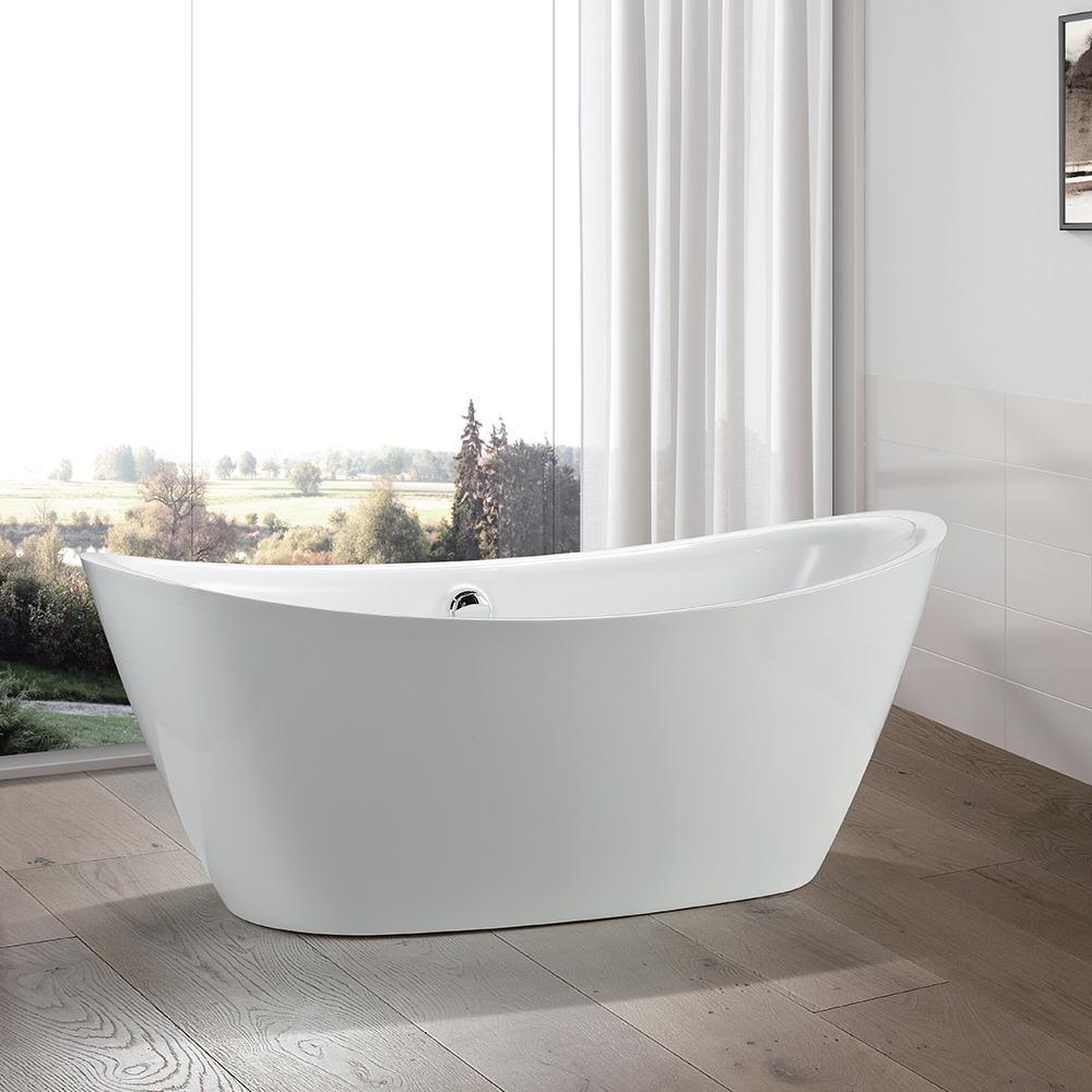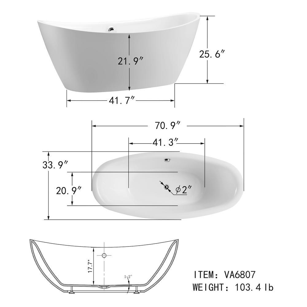 Relax and unwind in this luxurious Valence 71 in. freestanding soaking bathtub. The white finish complete the contemporary design of this soaking tub that would make a great addition to any bathroom. It is UPC certified and includes a chrome overflow, chrome pop-up drain, leveling legs and a flexible drain hose.
