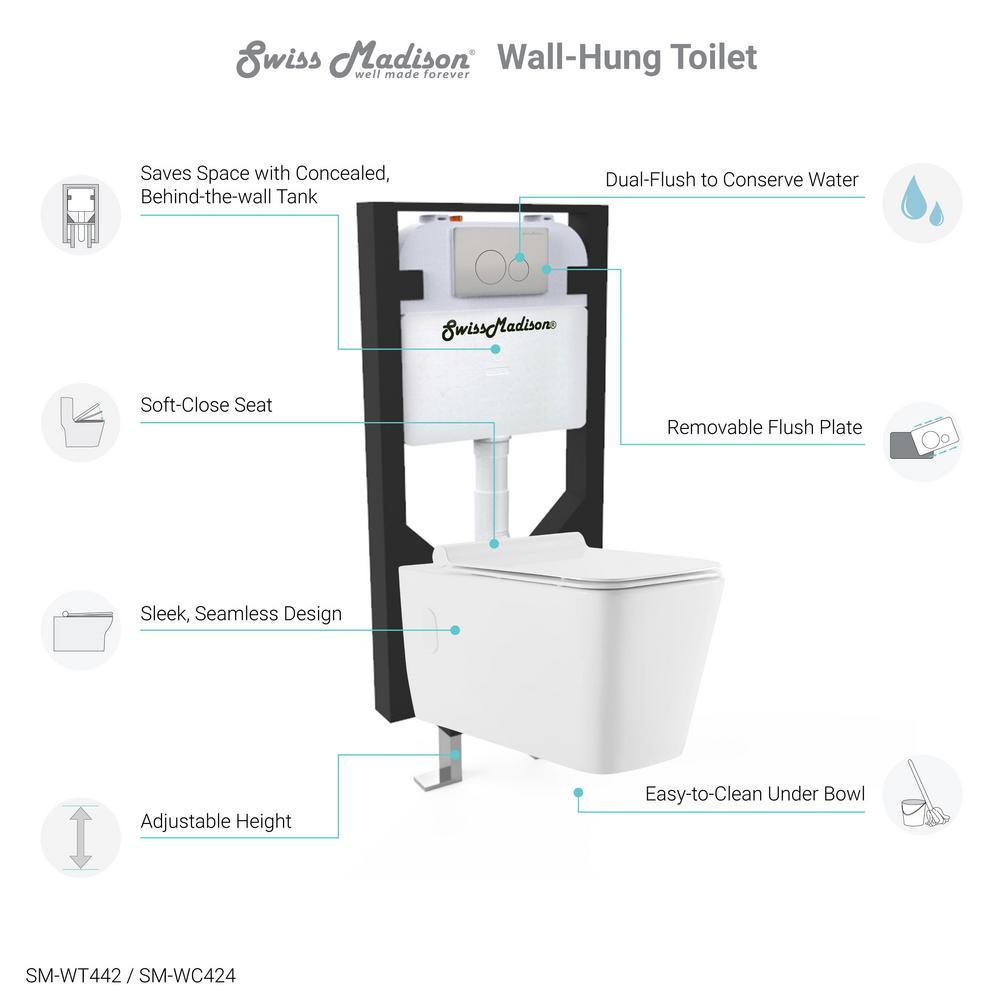 0.8/1.28 GPF Concorde Wall Hung Square Dual Flush Elongated Toilet Bowl in White