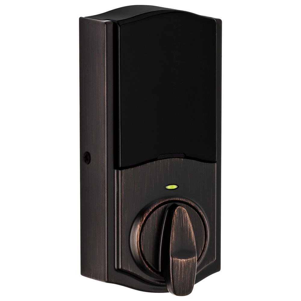 The SmartCode touchpad smart lock with Home Connect technology enables the lock to wirelessly communicate with other devices in home. The lock allows the user (through a web enabled device) to remotely check the door lock status, lock or unlock the door and receive notifications. SmartCode is a one-touch locking motorized deadbolt. With your personalized code, you can enter your home with the convenience of keyless entry and the back-lit keypad provides increased visibility. SmartCode is easy to install, program and use, and operates on 4 AA batteries. It also features SmartKey Security as the back-up keyway. This single cylinder deadbolt can be locked or unlocked by using the keypad or key from the outside as well as the turn button from the inside. The Venetian Bronze finish is hand-rubbed to reveal unique bronze highlights and provides a rich and warm complement to the product's style.