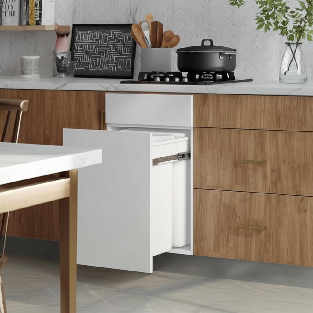 Upgrade your kitchen with the Edgeley Dual Pull-Out Trash Can Cabinet for a blend of style and practicality.