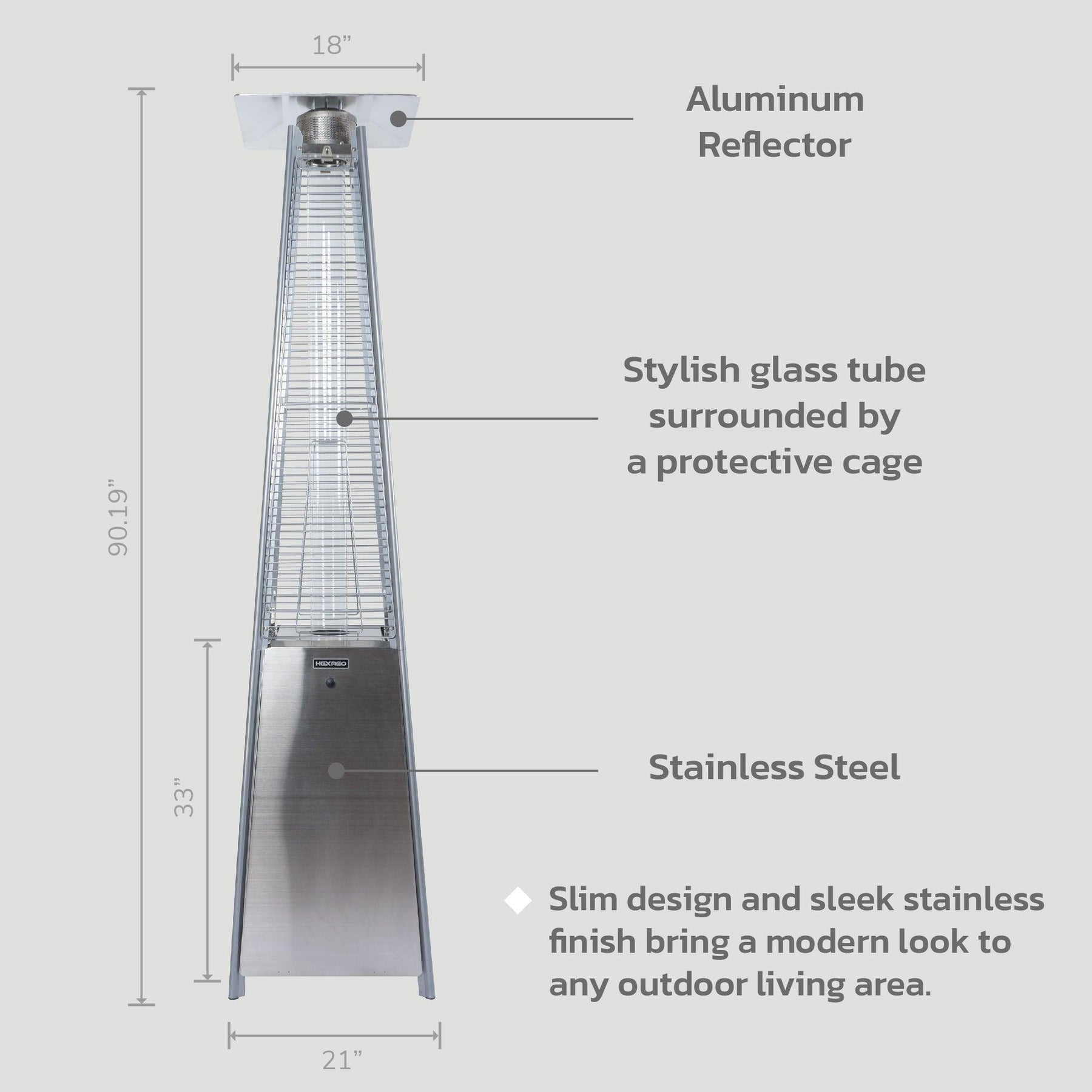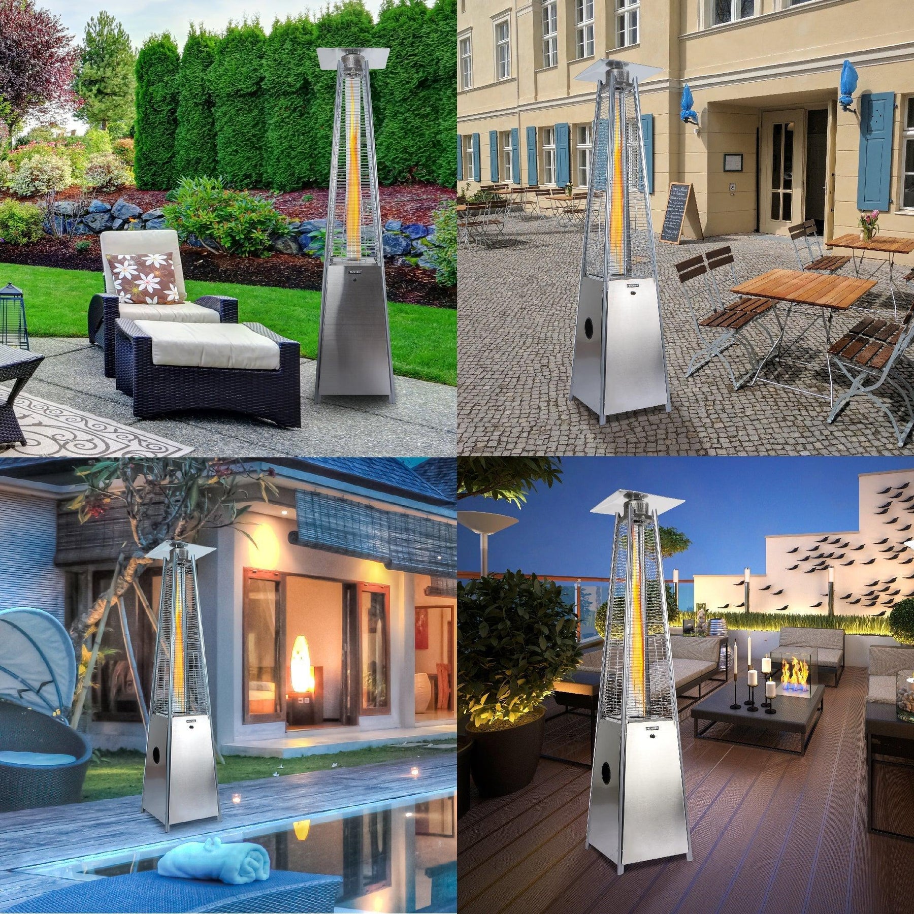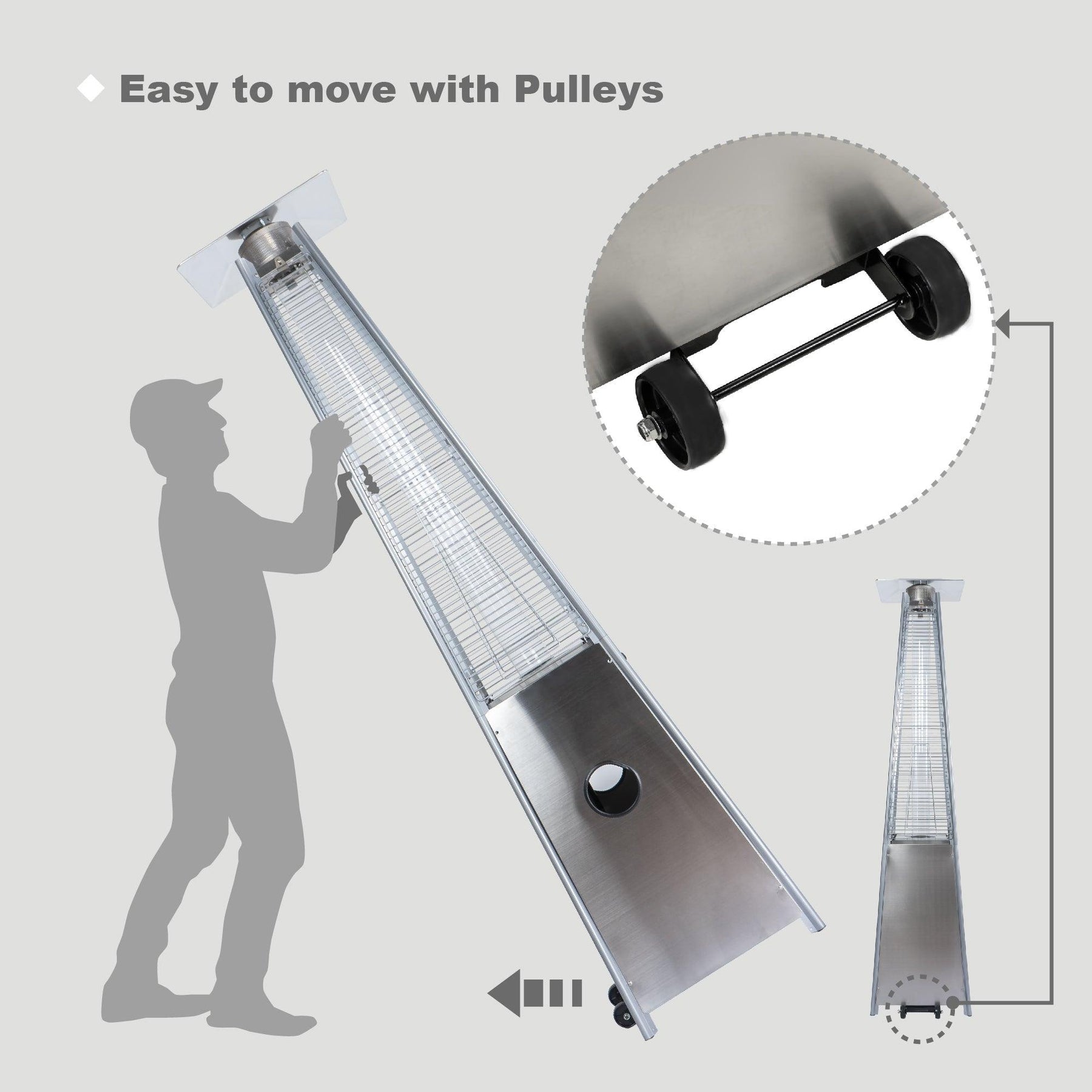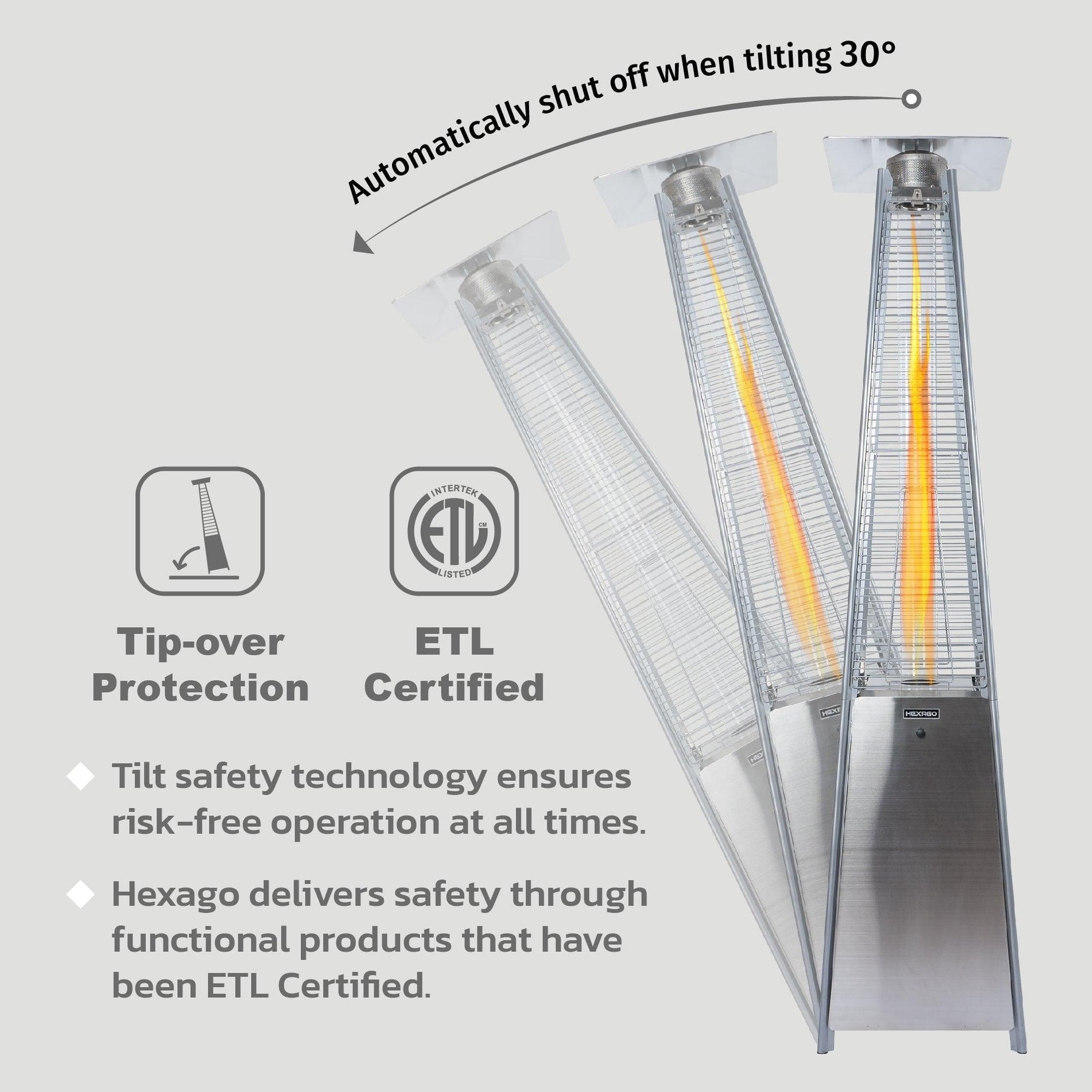 HEXAGO - 40,000 BTU Pyramid Stainless Commercial Outdoor Patio Heater, Adjustable Portable Liquid Propane Gas Floorstanding Heater with Wheels, ETL Listed