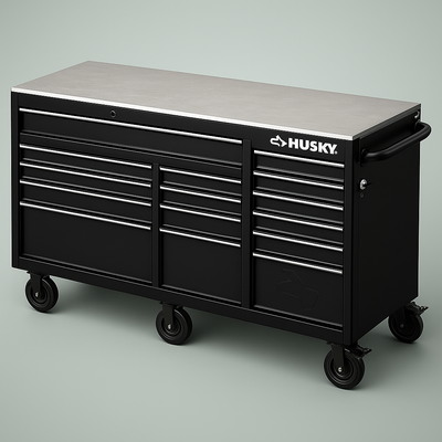 The Husky Heavy-Duty 72 in. 15-Drawer Mobile Workbench combines industrial-grade strength with modern convenience. Featuring an all-welded steel frame, a spacious stainless steel work surface, and 15 soft-close drawers, it offers ample storage and a premium workspace. Integrated power outlets, dual locks, and heavy-duty casters make it the ultimate solution for organized, secure, and mobile tool storage.