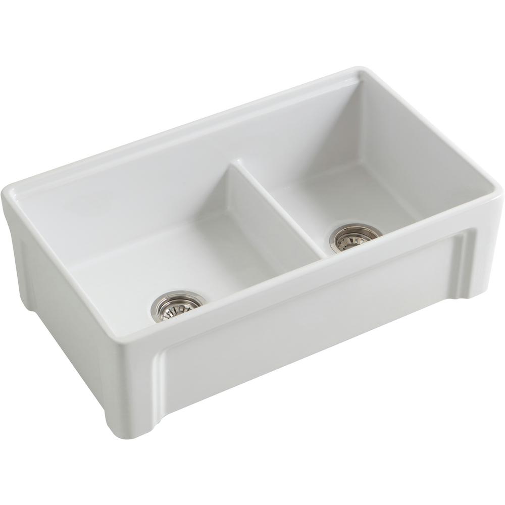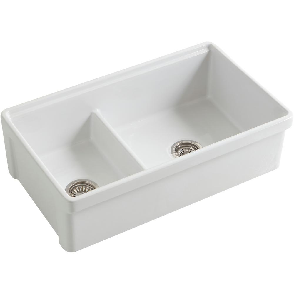 - Farmhouse installation; apron front is 10 in. H