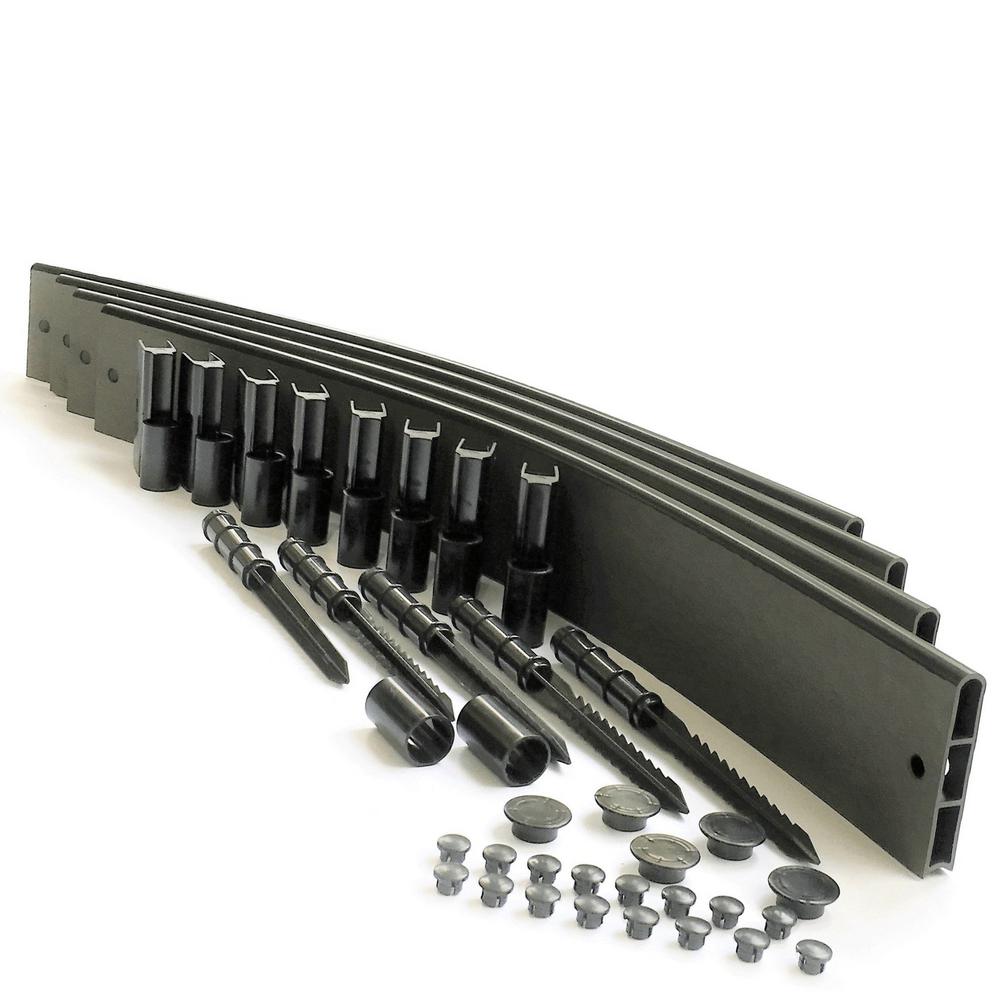 Frame It All playground borders were created by a landscape designer to be an easy, secure and cost-effective way to contain wood and rubber safety surfacing under your child's play area. Unlike heavy wood ties that splinter (and are labor intensive). Frame It All boards and brackets go together with ease. Our borders are made from sustainably sourced wood fibers and food-grade HDPE recycled plastic, so your children are safe from splinters and hazardous chemicals. Each kit contains four curved Weathered Wood 1 profile boards and snap-lock brackets totaling 16 lin. ft. Snap-lock brackets require no tools simply slide and snap in place. Straight kits are also available and can be used interchangeably with curved kits to create natural borders that integrate with your landscape. Helpful hint. When calculating the dimensions of your playground border, a good rule of thumb is to allow 2X the height of your swing set in front and behind the swing and 6 ft. on either side of the swing set. For example, if your swing set is 7 ft. H, you would want 14 ft. of safety surface in front of and behind the swing, for a total depth of 28 ft.