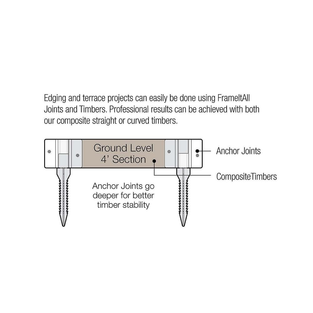 Make your landscape pop. Our tool-free landscape edging kits make it simple to boost your curb appeal and solve a host of landscaping issues. Create simple borders, pathways or even small retaining walls. Your kit comes with everything you need to cover 16 lin. ft.. You get 4 of our revolutionary 1 Weathered Wood straight composite boards, and four 1 snap-lock anchor brackets. Brackets simply slide and snap to lock securely to the board. Anchor brackets grip the ground tight, so your edging will stay put no matter the weather. The serrated stakes will also help to keep your borders from being disturbed by mowers or any human activity. Our Raised Garden Bed Anchor Brackets pivot 270° allowing endless design options. Add gravel or mulch between sections to create paths or textural interest. When creating pathways, be sure to line with landscape fabric to prevent weeds before filling with gravel or mulch. Curved landscape edging kits are also available. Feel free to mix and match to create a border that flows with your landscape. You can stack your Backyard Borders higher to create deeper borders or to create levels and cascading features. Simply order additional 1 Weathered Wood straight boards and 1 snap lock stacking brackets (your kits come with anchor brackets). The modular design of all Frame It All products means that you can add, stack, re-design or re-purpose your materials any time the mood strikes.