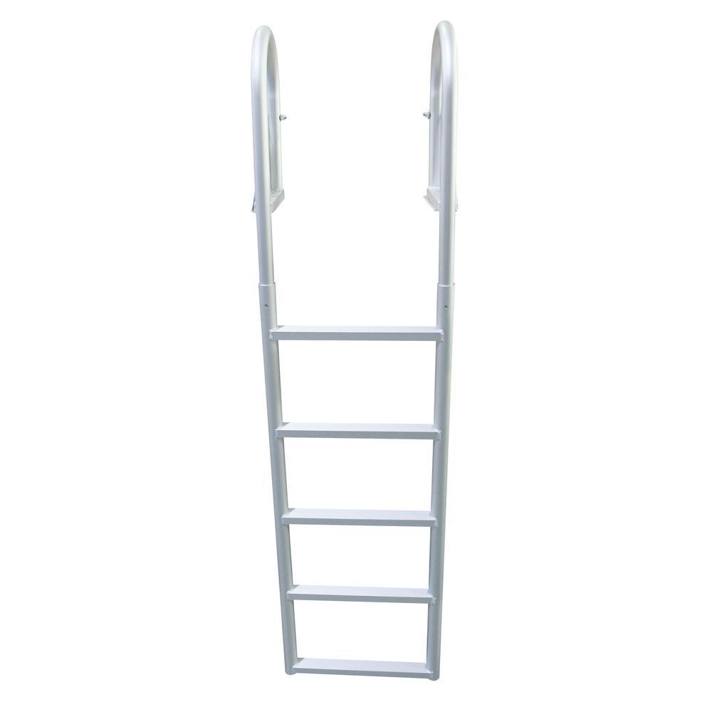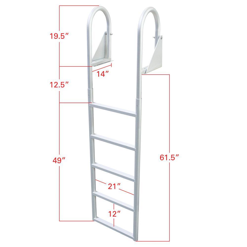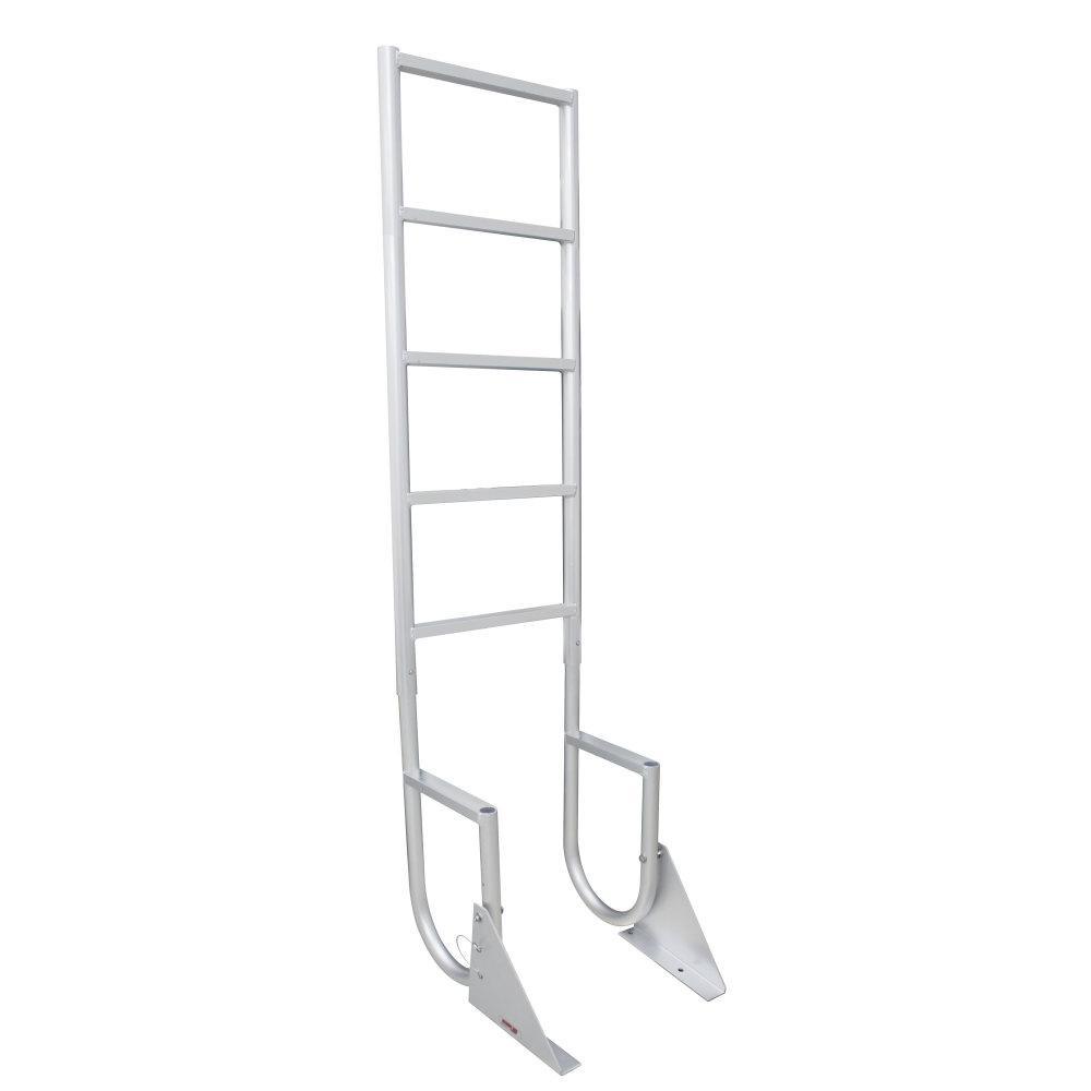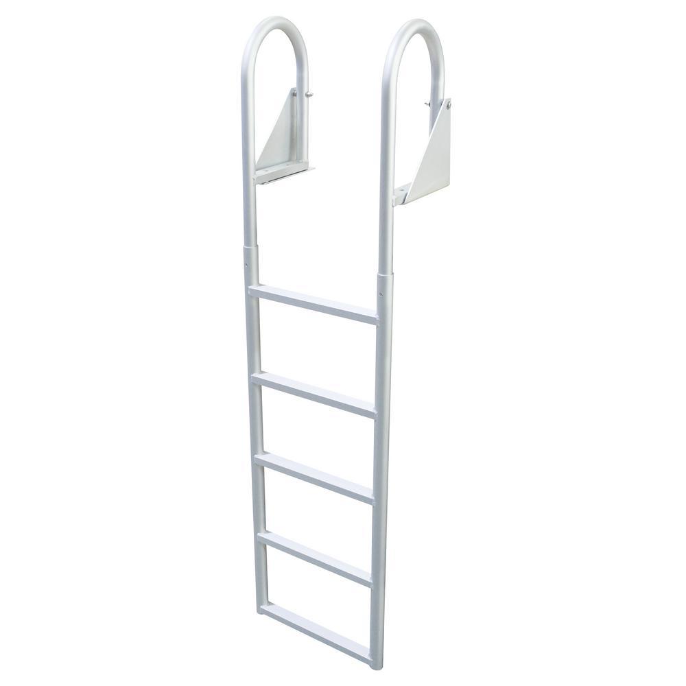 Weeds and algae can accumulate on your ladder almost overnight, for slippery, slimy times. Flip your ladder out of the water when it's not in use for a more pleasant, safer boarding experience. Flip up dock ladder is made of welded aluminum for a 300 lbs. capacity. Robust 21" width for comfort. The flip-up design offers the convenience of a permanently mounted ladder that can be easily removed from the water. Quick, simple assembly using common hand tools. Corrosion-resistant in freshwater applications; oxidation may occur in brackish and saltwater. Due to the wide range of surfaces to with the ladder may be mounted, mounting hardware is not included. Two-year warranty.
