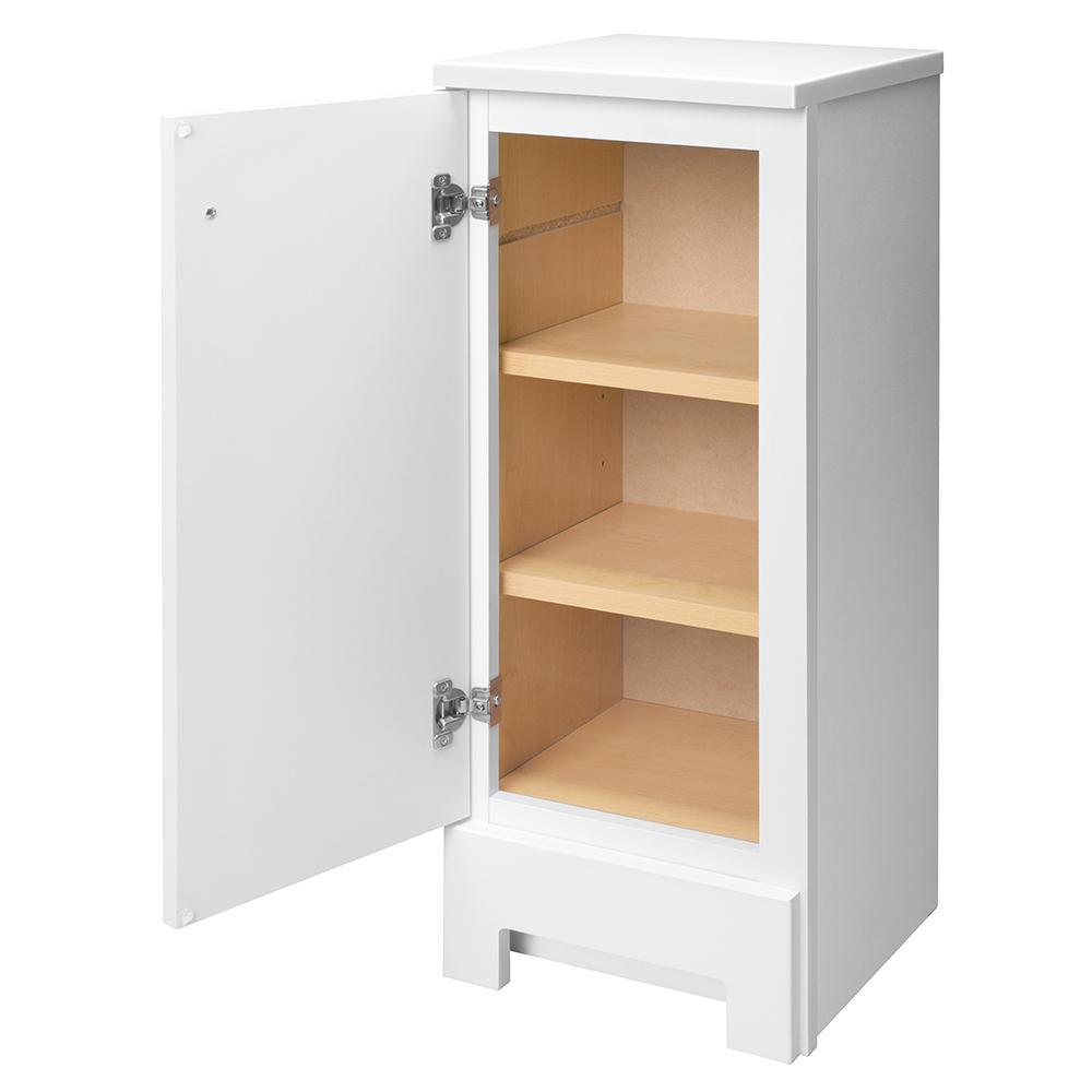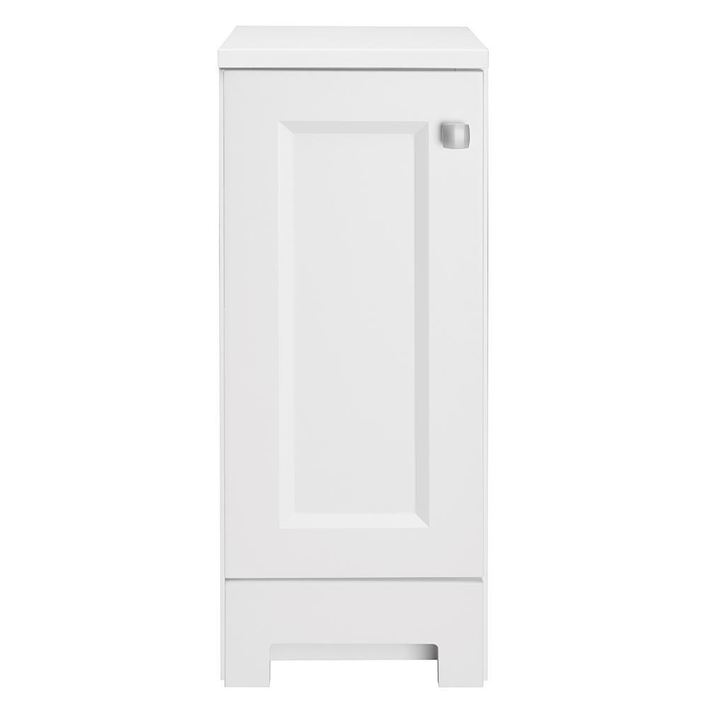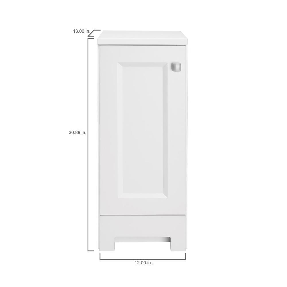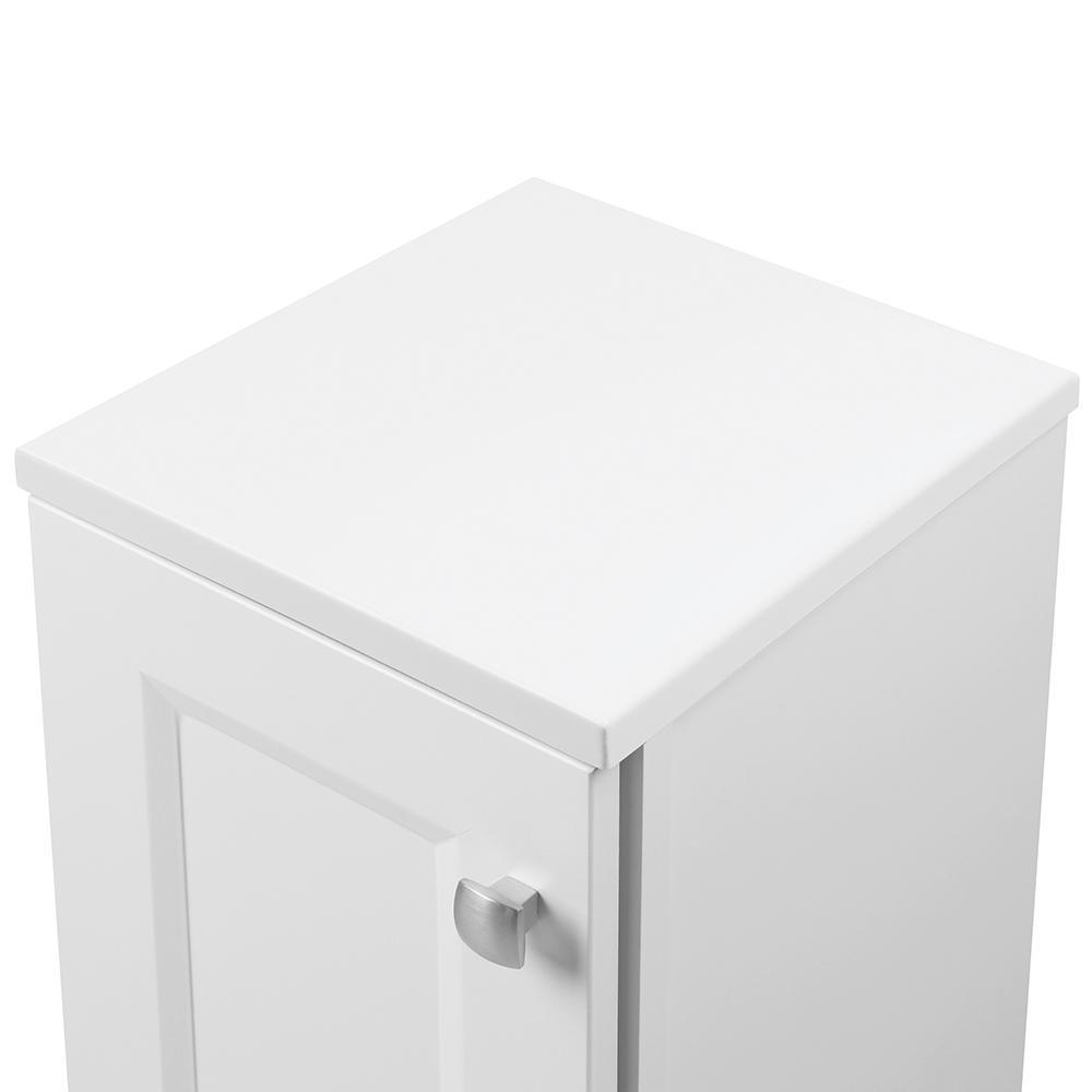 The Glacier Bay Shaila 12 in. W x 13 in. D Hutch in White with Cultured Marble Top in White will add functionality to your bath decor. Featuring durable construction in a clean, white finish, this hutch has 1 door with 2 adjustable shelves that provide ample space for towels and other bathroom necessities. The white cultured marbled top complements the cabinet finish and is stain and scratch-resistant. The cabinet is fully assembled for easy installation and is accented with satin nickel cabinet hardware. The floor hutch coordinates with other white pieces from the Shaila Collection to give your decor a polished and pulled-together look.