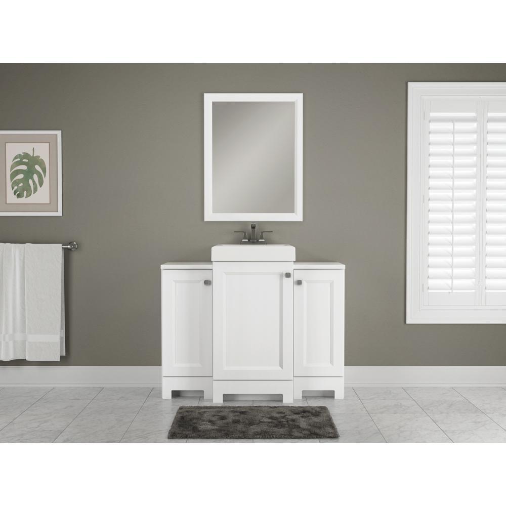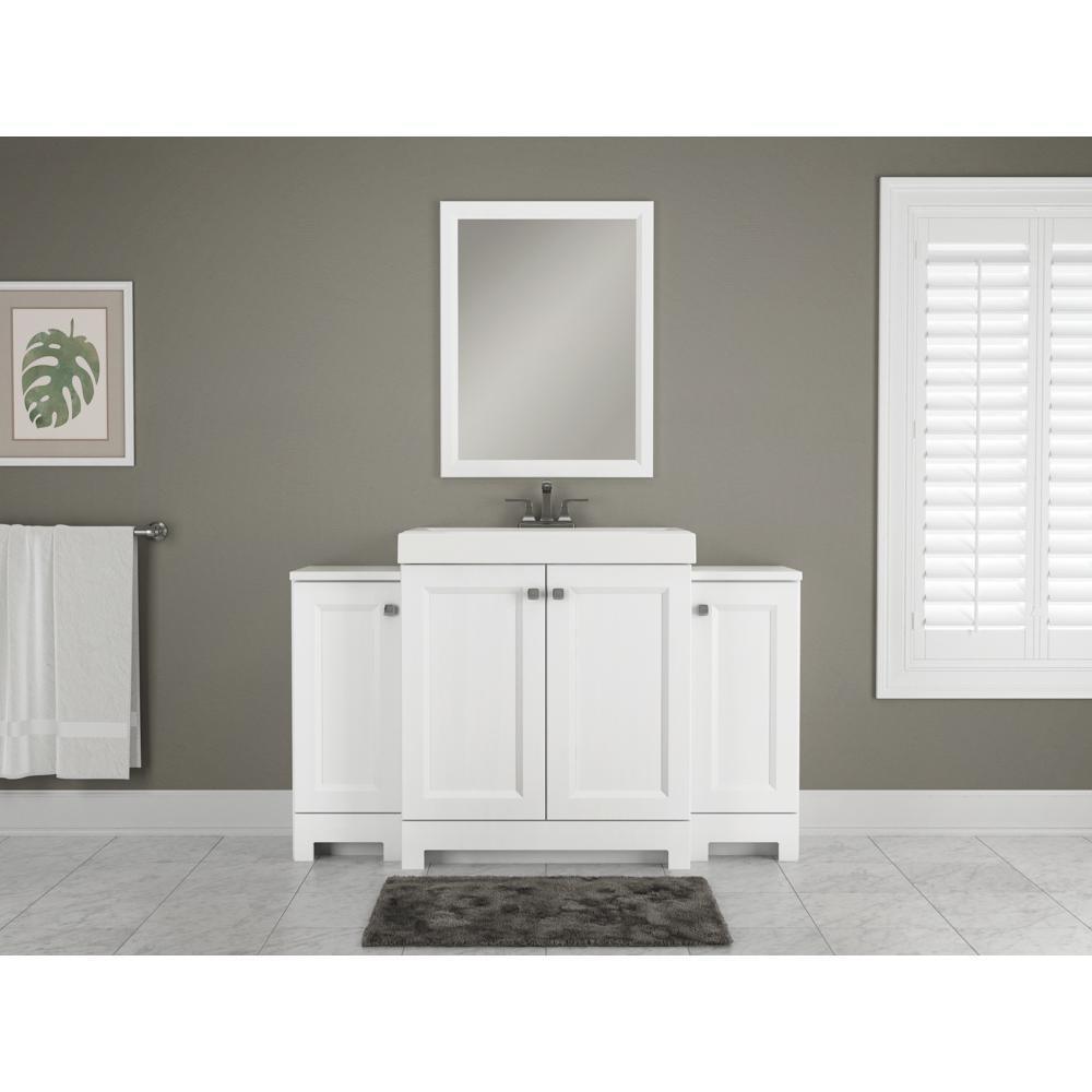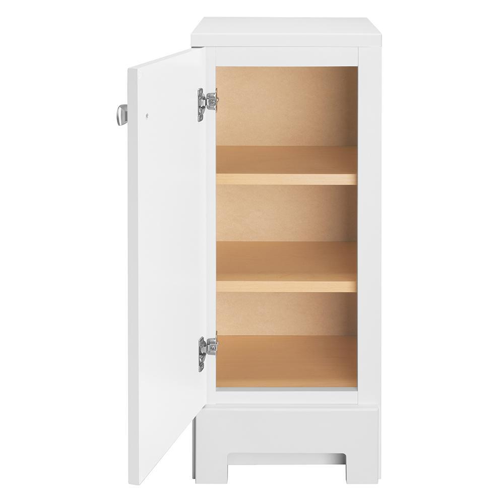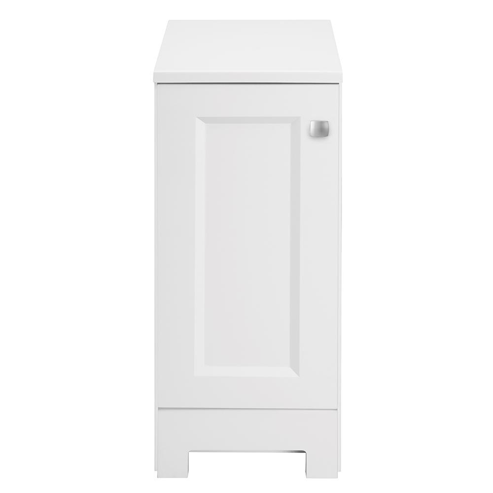 The Glacier Bay Shaila 12 in. W x 13 in. D Hutch in White with Cultured Marble Top in White will add functionality to your bath decor. Featuring durable construction in a clean, white finish, this hutch has 1 door with 2 adjustable shelves that provide ample space for towels and other bathroom necessities. The white cultured marbled top complements the cabinet finish and is stain and scratch-resistant. The cabinet is fully assembled for easy installation and is accented with satin nickel cabinet hardware. The floor hutch coordinates with other white pieces from the Shaila Collection to give your decor a polished and pulled-together look.