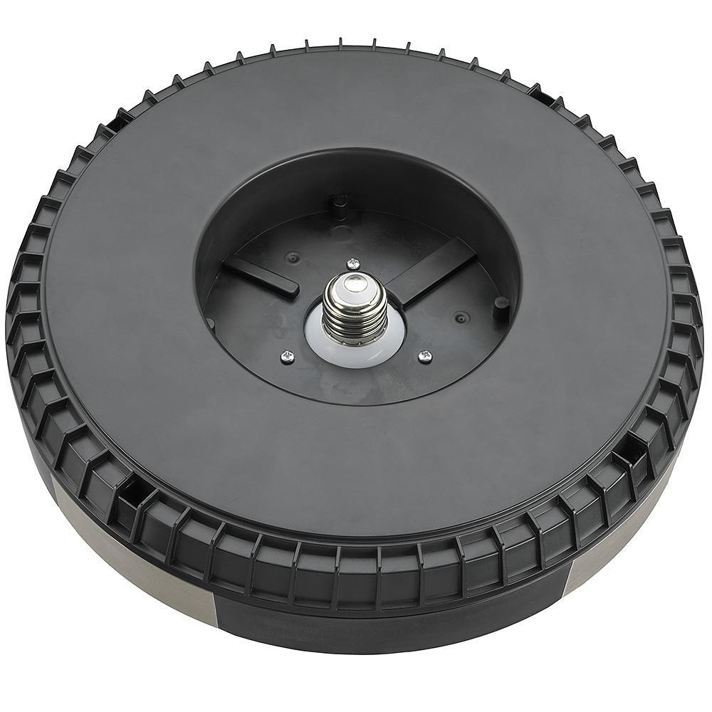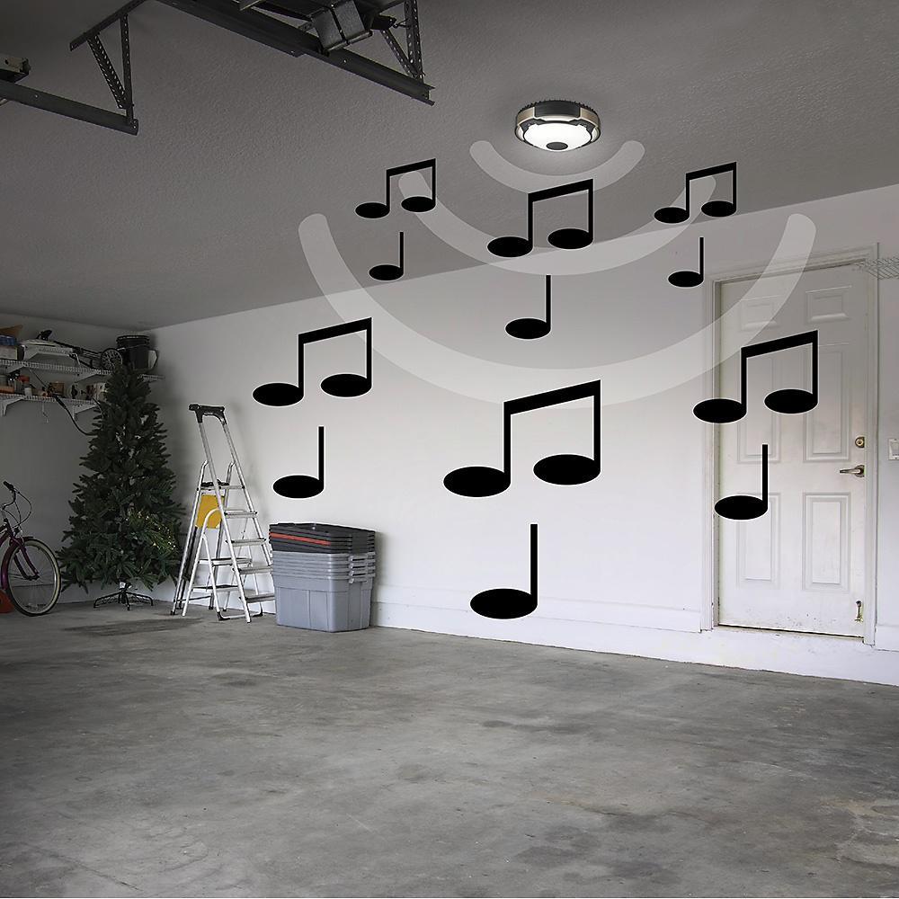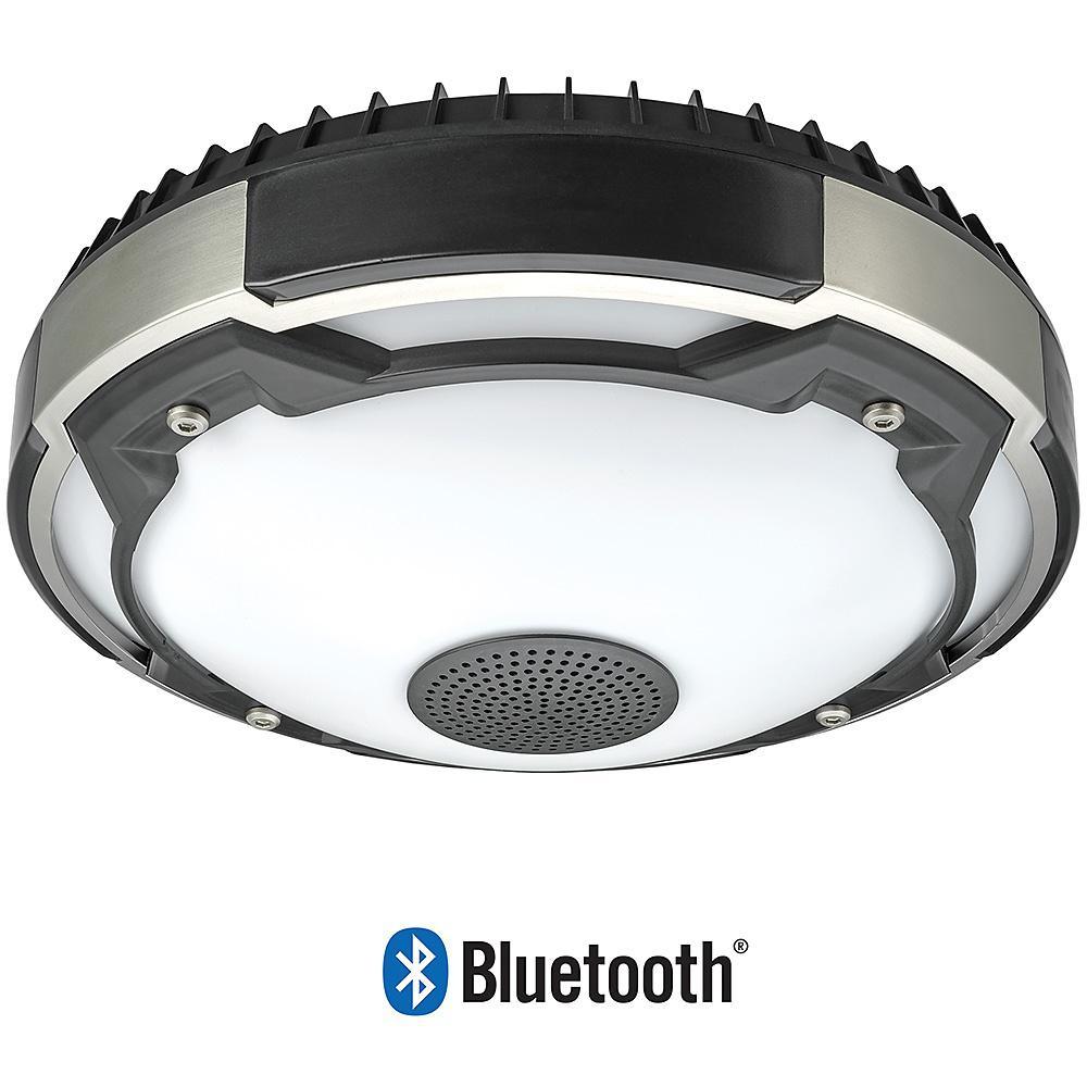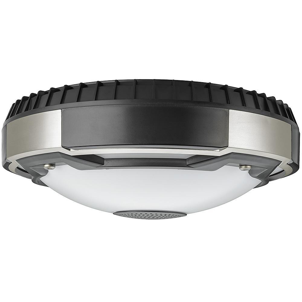 Commercial Electric's Spin Light 11 in. Black and Brushed Nickel Integrated LED Flush Mount Ceiling Light with Bluetooth Wireless speaker is an innovative way to listen to your music and still project high output and high quality illumination. It is designed specifically for communication across short distances up to 33 ft. To install, simply screw into existing plastic and porcelain lamp holder without any wiring required. Converts your lamp holder to a fixture in no time at all. Emits 1000 Lumens of brightness using only 14-Watts of electricity. Ideal for kitchen, playroom, craft room, office, entertainment area, storage/utility rooms or basement.