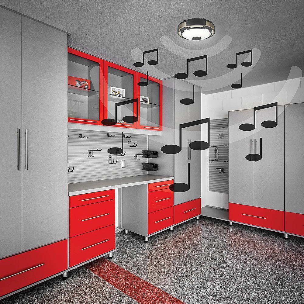 Spin Light 11 in. Heavy Duty LED Flush Mount Ceiling Light with Bluetooth Speaker 1000 Lumens 4000K Audio Range 33 ft.