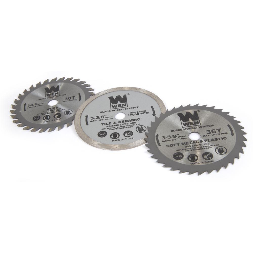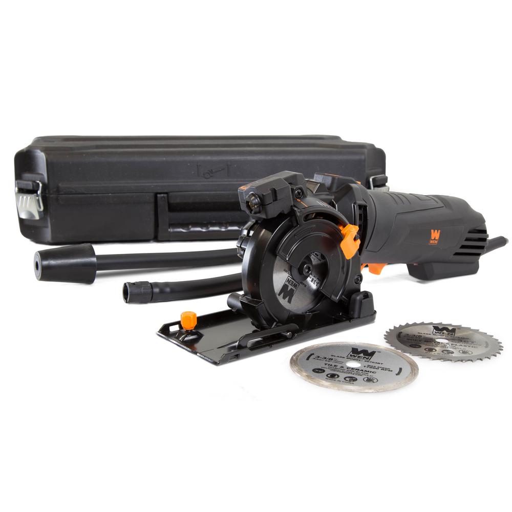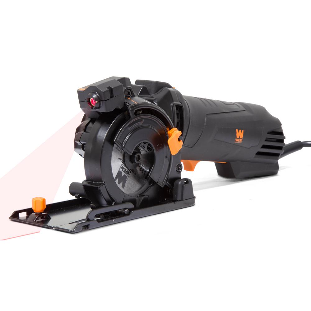 Remember when you could make cuts quickly and easily. The WEN 4.2 Amp Plunge-Ready Mini Circular Saw provides versatile and powerful performance all in the palm of your hand. Perfect for wood flooring, drywall, tile, sheet metal, pipes, carpet and more. Its compact design weighs in at a mere 4.5 lbs., limiting fatigue during operation and making for easy storage between jobs. The 4.2 Amp motor provides maximum torque, spinning the 3-3/8 in. blade (85 mm, 15 mm arbor) up to 4500 RPM. Attack boards up to 1 in. in thickness. The easy-to-use trigger features a slot for your finger, allowing the saw to automatically engage as you push forward. Adjust the depth stop to your desired cutting depth for the perfect plunge cut in even the hardest of woods. Your WEN Compact Circular Saw also comes packed with accessories, including an HSS metal-cutting blade, a diamond-coated tile-cutting blade, a carbide-tipped wood cutting blade, a 5 in. rip fence, an 80 in. dust extraction tube, and a convenient blow-mold carrying case, complete with storage compartments for all your accessories. And, because its a WEN product, your handheld circular saw comes backed by a nationwide network of skilled service technicians, a friendly customer help line and a 2-year warranty, all to make sure you remember WEN.