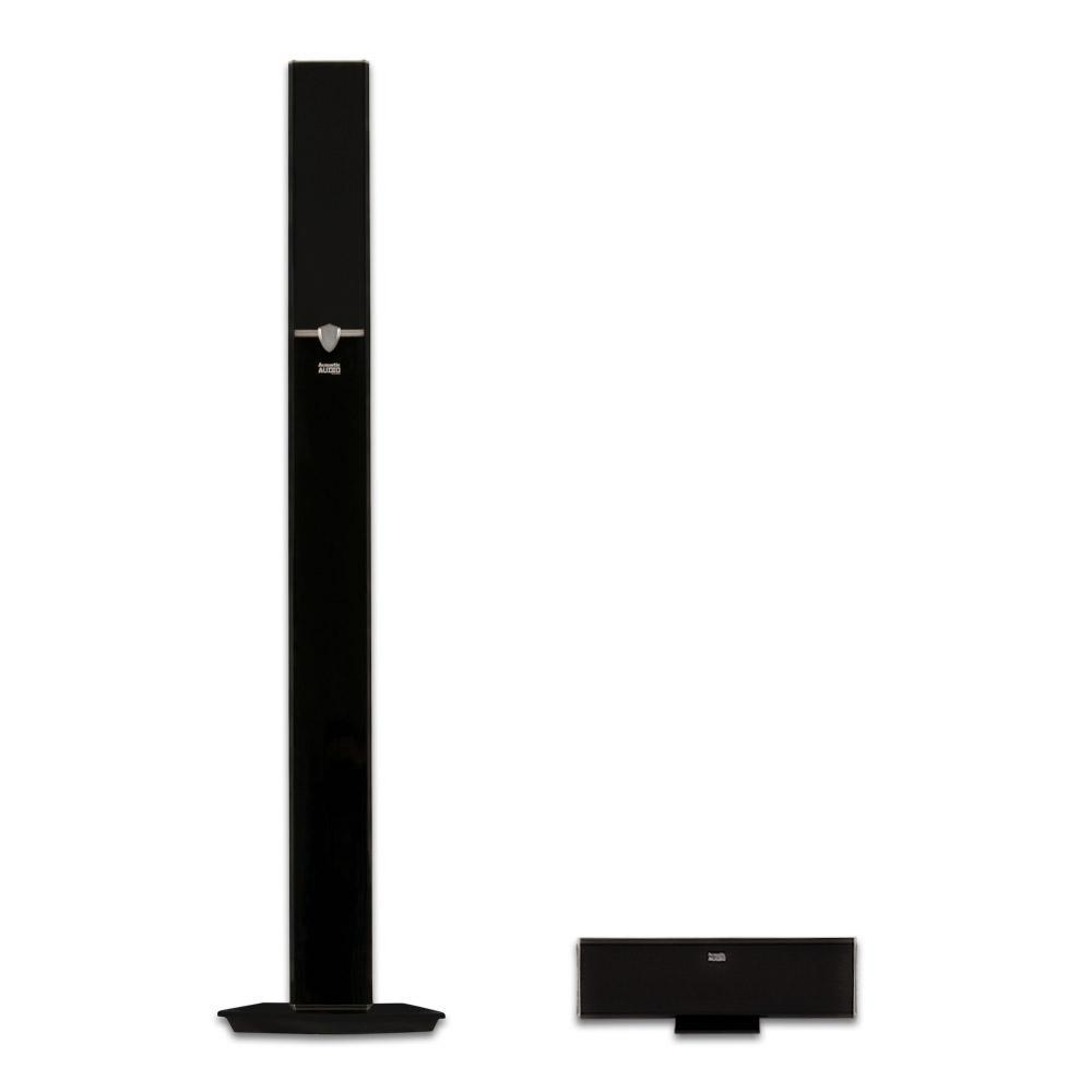 This Acoustic Audio 5.1 Bluetooth System features a contemporary design and is a stylish addition to any home. This 1000-Watt, 6-piece system includes 1 8 in. powered subwoofer, 4 tower satellite speakers and a bookshelf center speaker as well as cables and instructions needed to Plug and Play any audio source with a RCA audio output or use the front panel USB interface or SD/MMC card input. Built in Bluetooth receiver. Use it for your home theater system, personal computer or laptop, gaming system, cell ph1, MP3 player or any other audio devices with 3.5 mm headph1 output. The powered subwoofer features independent speaker controls as well as bass, treble and volume functions. It utilizes a digitally tuned wooden enclosure for increased bass response.