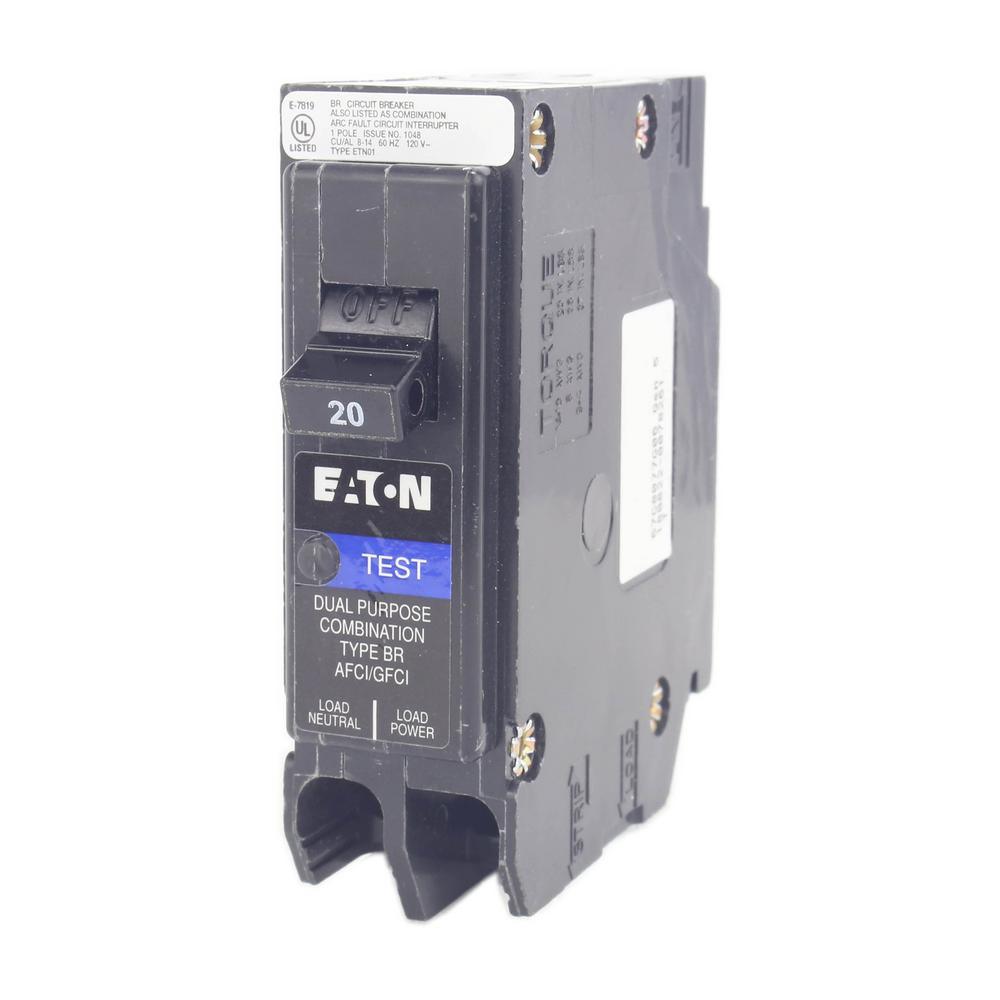 BR type plug-on neutral dual function arc fault and ground fault breaker is compatible with BR type plug-on neutral breaker boxes