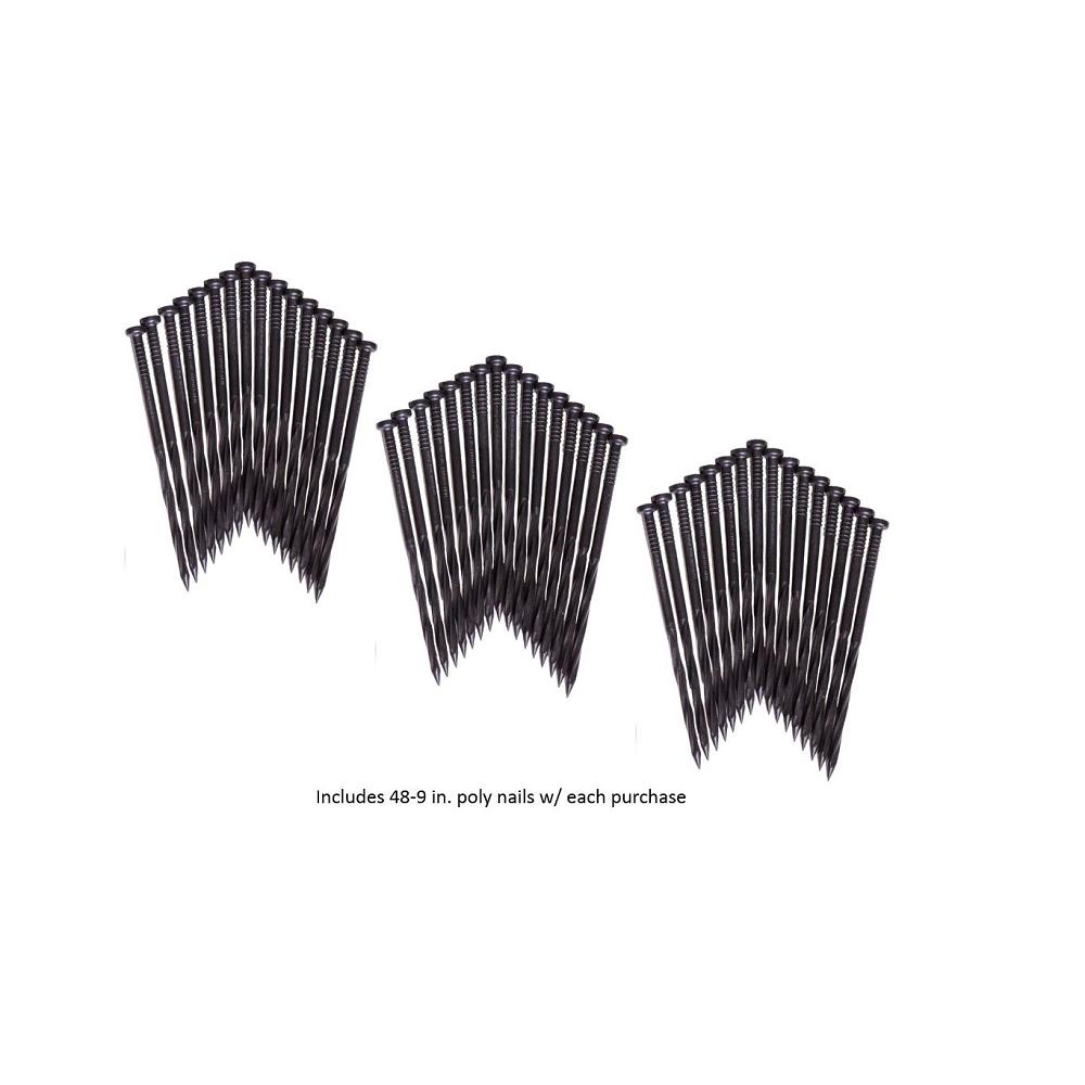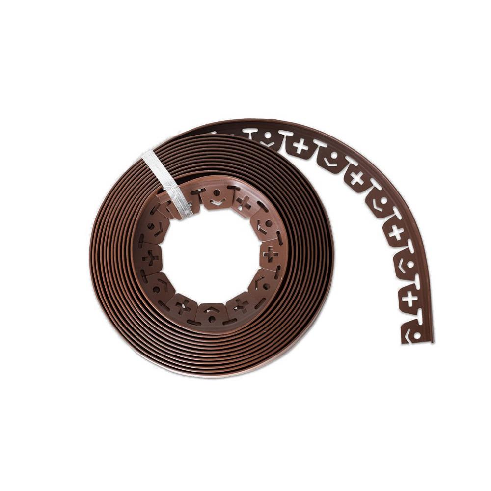 60 ft. of Innovative edging in light brown has many benefits to a landscape design. The light color provides a nice blend to match many colors of mulch options. No digging required. The edging can be contoured to create curve or straight designs. Easy cut to length by use of tin snip or a hack saw. Wear protective gloves before cutting. Perfect for along driveways, sidewalks and ringing trees. Landscape fabric can be installed up to the sidewall and using any of the supplied heavy-duty poly anchor nails to secure. 48-count 9 in. heavy-duty anchor nails provided with each coil.