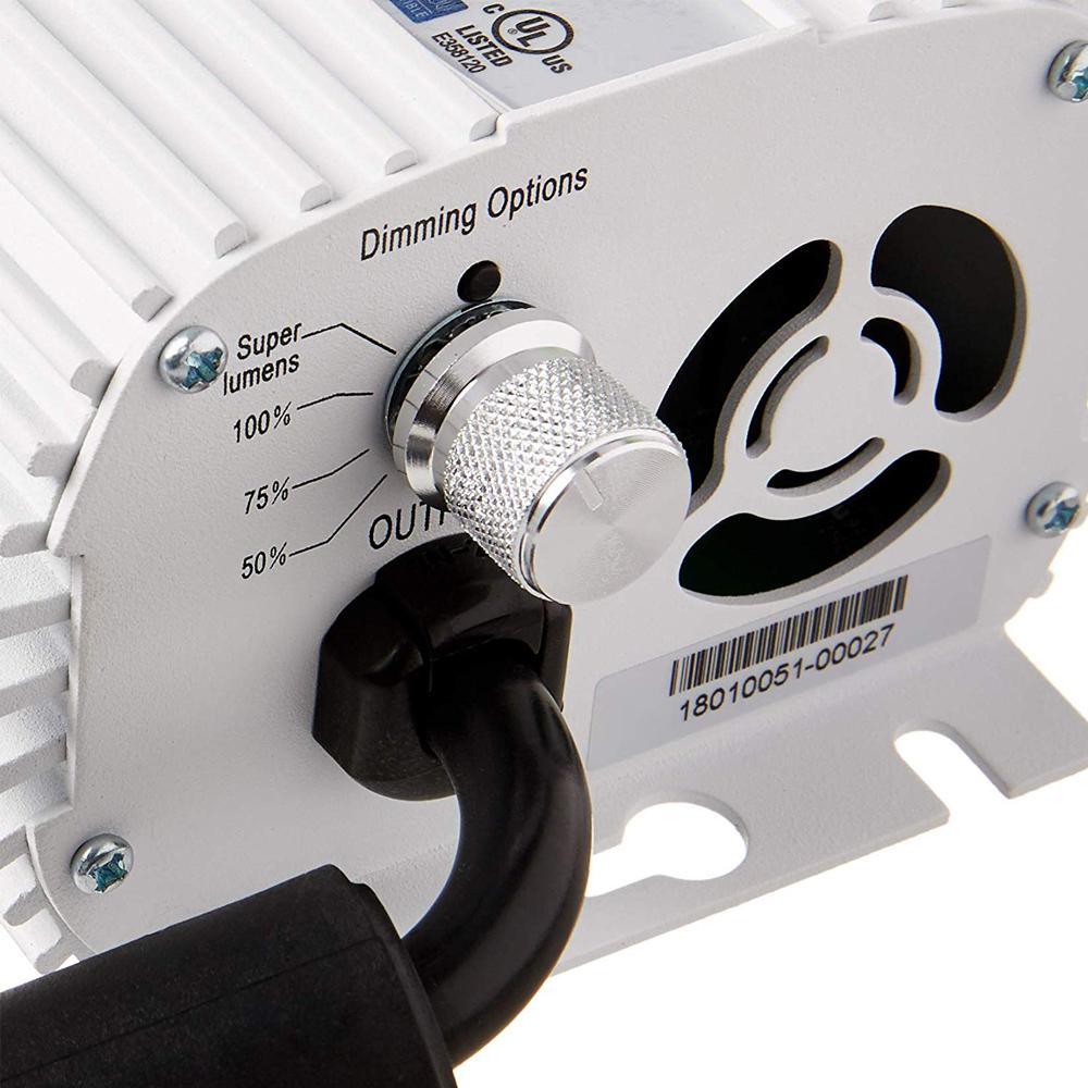 The Hydro Crunch Grow Light System combines our digital ballast which is UL listed and has the ability to dim 100%, 75%, 50% and also has a super lumen enhanced setting to maximize the grow light systems output. Digital ballasted lighting systems generate roughly 30% more PAR (photo synthetically active radiation) for every watt of electricity consumed compared to the magnetic (core and coil) ballasts of the past. Digital ballasts are more efficient at turning electricity into light and because light intensity often directly correlates to yield you can expect more production for the same electric bill. Each grow light system comes with a plant specific HPS (high pressure sodium) bulb designed specifically for horticultural use. The reflector comes pre-wired with detachable ballast cord and an E39 socket which will accommodate HID bulbs (both HPS and MH). The grow light reflector comes with a pebbled, polished reflector for ultimate dispersion and reflectivity. The grow light system comes with a grounded multi-pin timer to control your photo cycles along with a ratchet light hanger for easy hanging and up and down adjustments over the plant canopy.
