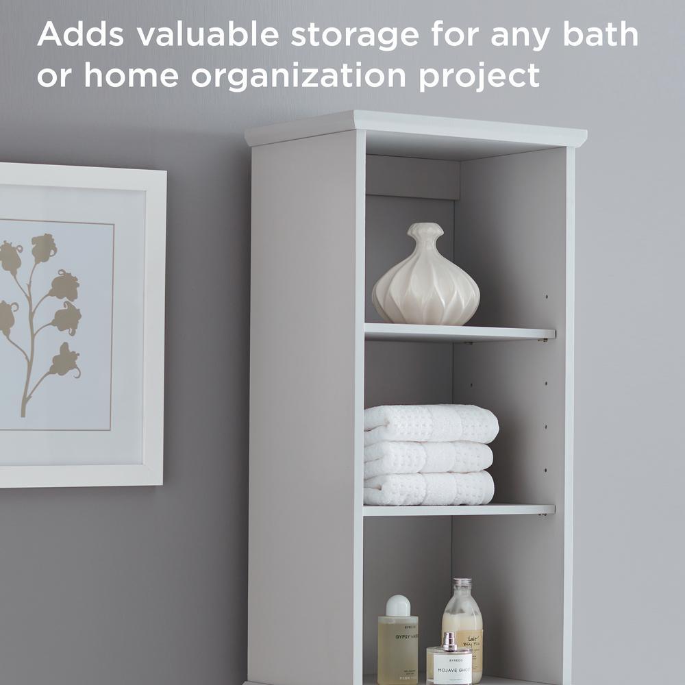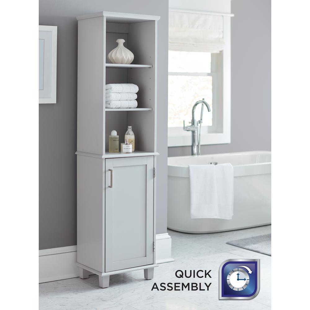 The sleek modern design of the Glacier Bay Shaker Style Linen Cabinet makes this an ideal bathroom storage solution that is timeless and classic. With its mix of concealed and open shelves, this linen cabinet offers 5 tiers of storage. Three of the cabinet's shelves are adjustable, allowing for customized placement to fit taller items. The cabinet is easy to assemble.