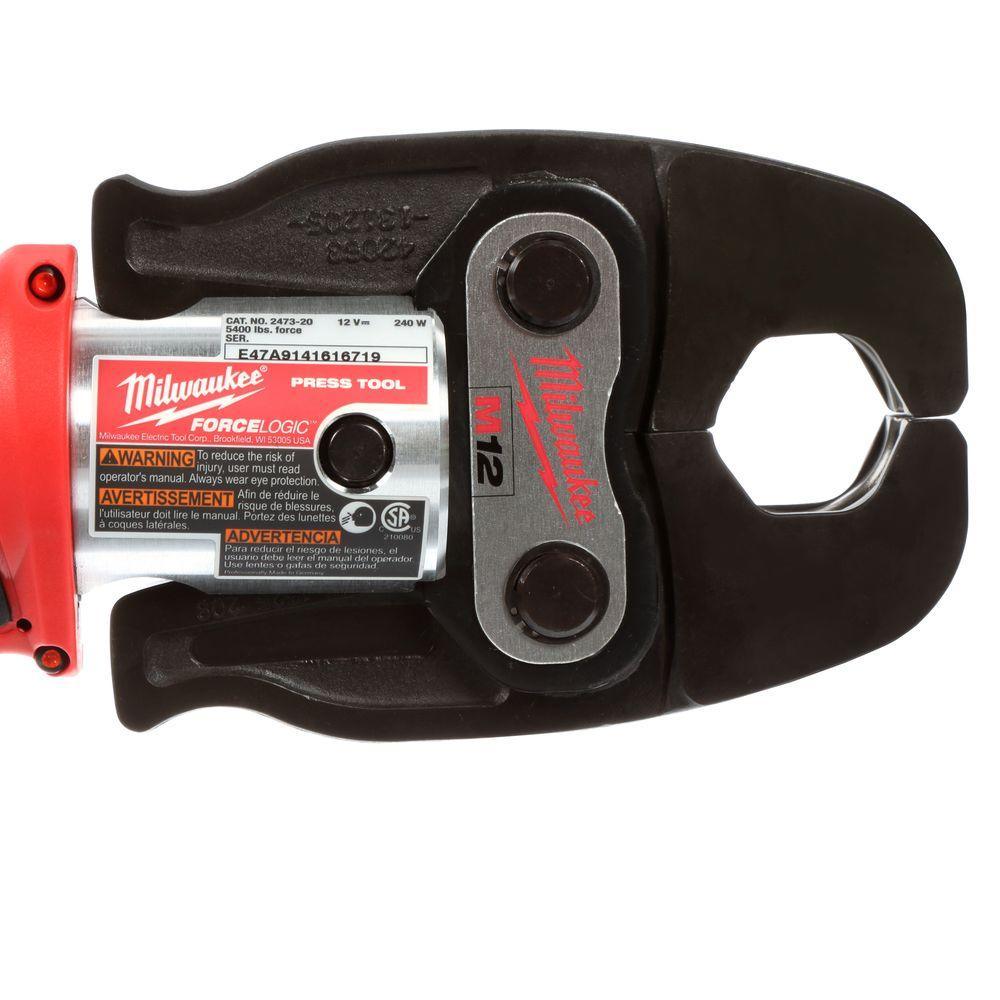 - Includes: (1) M12 force logic press tool, (2) REDLITHIUM 12-Volt batteries, (1) M12 REDLITHIUM charger, (1) M12 1/2 in. jaw, (1) M12 3/4 in. jaw, (1) M12 1 in. jaw and (1) carrying case, (1) M12 copper tubing cutter (2471-20)